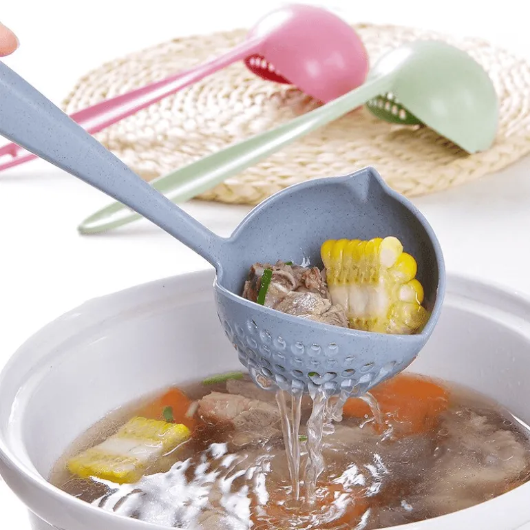 Entdecken Sie den kreativen 2-in-1-Suppenlöffel, ein praktisches Küchenutensil für jeden Suppenliebhaber. Dieses multifunktionale Werkzeug dient nicht nur als traditioneller Suppenlöffel, sondern verfügt auch über ein integriertes Sieb, mit dem Sie Ihre Lieblingssuppen und -saucen schöpfen und gleichzeitig feste Zutaten voneinander trennen können. Dieses Design sorgt für ein reibungsloses und genussvolles Esserlebnis.