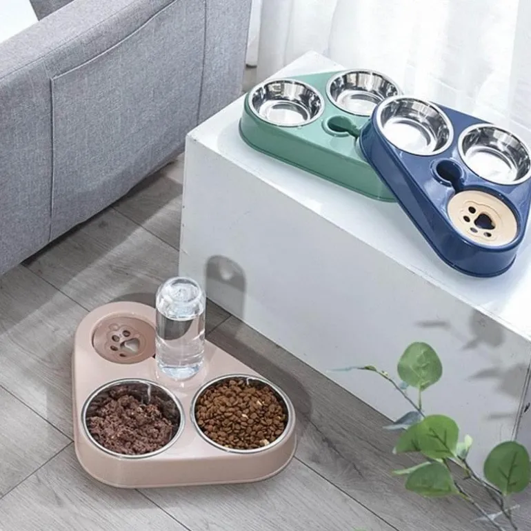 1 x 3-in-1-Tierfutternapf-Set aus Edelstahl.