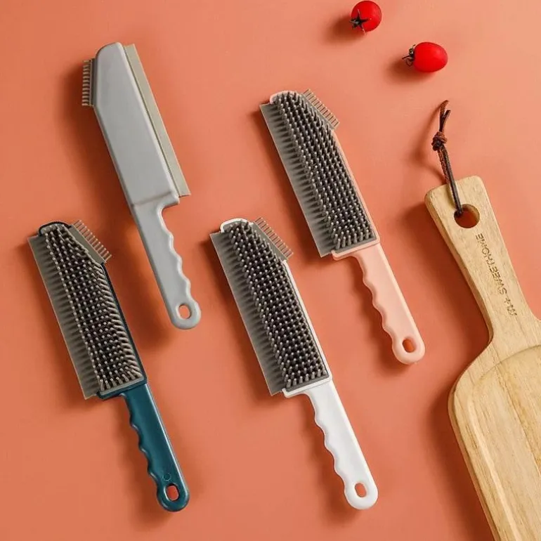 Entdecken Sie die Vielseitigkeit dieser 3-in-1-Küchenbürste, die speziell für effektives Geschirrschrubben und gründliches Reinigen entwickelt wurde. Die robuste, einteilige Formkonstruktion hält die Borsten während des Gebrauchs sicher an Ort und Stelle und sorgt so für Langlebigkeit. Die Kombination aus elastischen Borsten und feinen Kammzähnen ermöglicht Ihnen müheloses Erreichen und Reinigen schwer zugänglicher Ecken in Ihrer Küche. Ein kompakter Bürstenkopf an einem Ende entfernt gezielt Schmutz und Ablagerungen in Wandecken und sorgt so für schnelles und einfaches Reinigen.