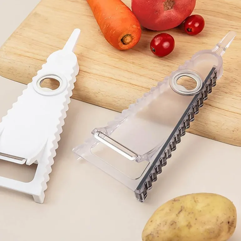 Der 3-in-1-Obstschäler und Flaschenöffner ist eine praktische Ergänzung für Ihre Küchenutensilien und macht das Kochen einfacher und effizienter. Mit diesem multifunktionalen Gerät öffnen Sie Plastikflaschen, Dosen und Getränkeflaschen mühelos mit einer einzigen Bewegung. Die scharfe Schälklinge erleichtert das Entfernen der Schale von verschiedenen Früchten und vereinfacht so die Zubereitung Ihrer Speisen.