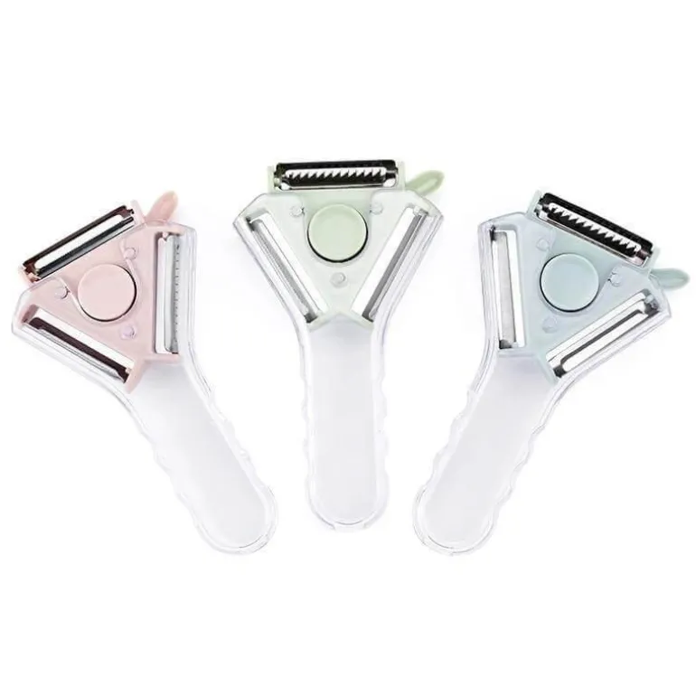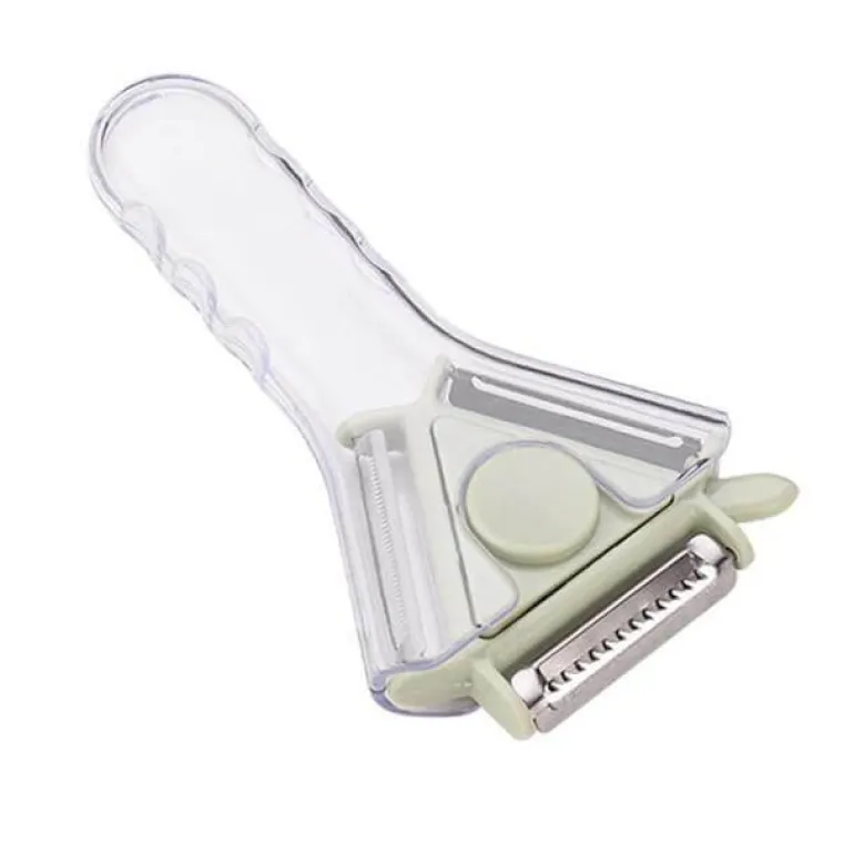 Dieser innovative Schäler verfügt über ein Dreiklingensystem, das sich einfach per Knopfdruck wechseln lässt und ihn benutzerfreundlich und effizient macht. Jede Klinge ist speziell für unterschiedliche Texturen konzipiert: eine für weiches, eine für hartes und eine zum Raspeln.