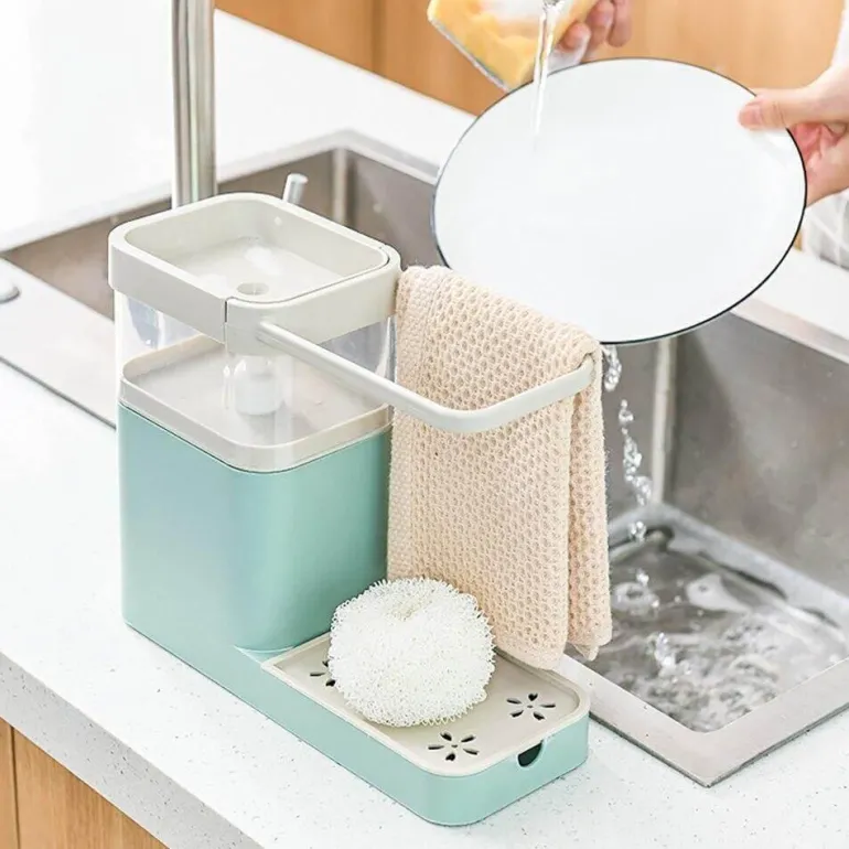 Verwandeln Sie Ihren Spülbereich mit diesem multifunktionalen Küchenorganizer, der einen Spülmittelhalter mit einer speziellen Schwammaufbewahrungslösung kombiniert. Dieses vielseitige Regal sorgt für die übersichtliche Aufbewahrung all Ihrer Reinigungsutensilien, bietet einfachen Zugriff und sorgt für einen aufgeräumten Arbeitsplatz.