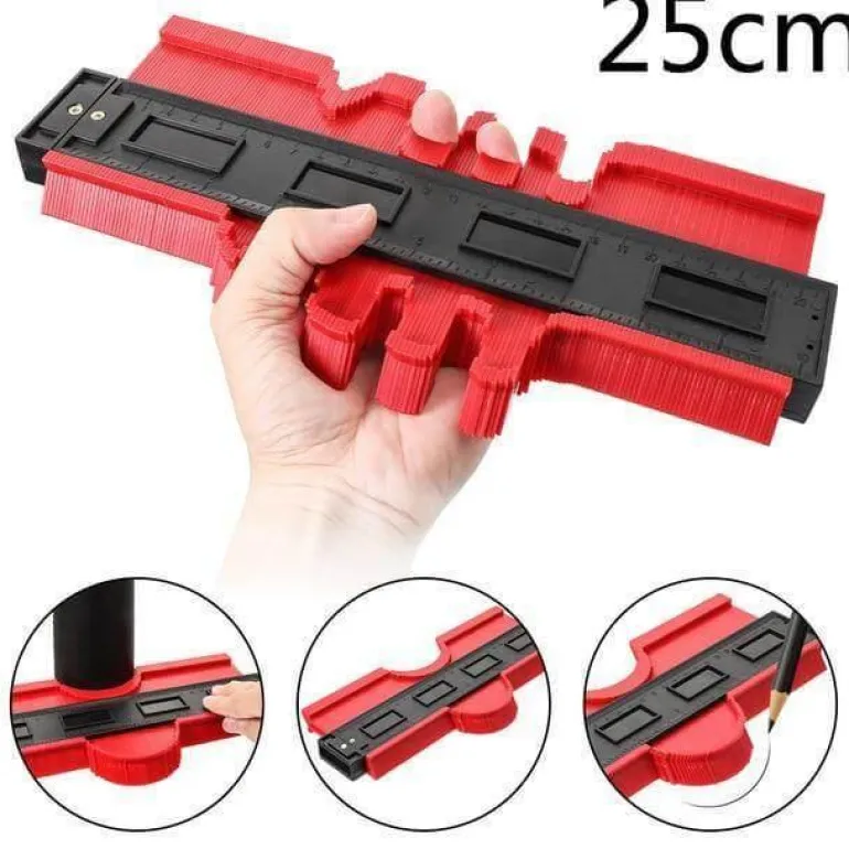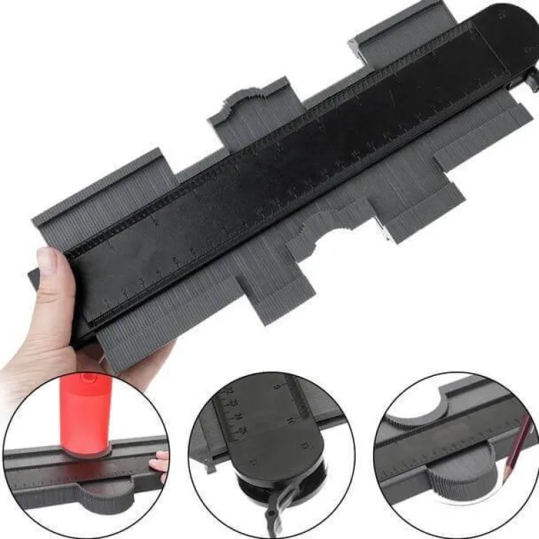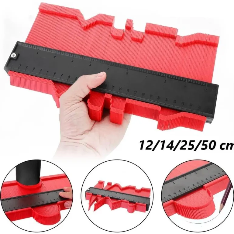 Die einfache Handhabung ist ein wichtiges Merkmal: Drücken Sie die Konturlehre einfach gegen ein Objekt, um dessen Profil zu erfassen, und schneiden Sie es anschließend in Form. Dieses Werkzeug eignet sich hervorragend zum Verlegen von Fliesen, Laminat, Teppichen, zur Maßkontrolle und für Formarbeiten.