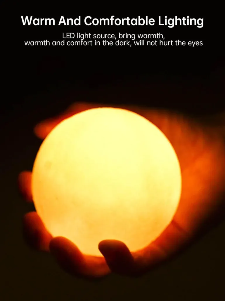 With its creative three-dimensional spherical design, the lamp beautifully resembles the moon and serves as a stylish addition to any room. The warm LED light source bathes your space in a cozy glow, providing comfort without straining your eyes.