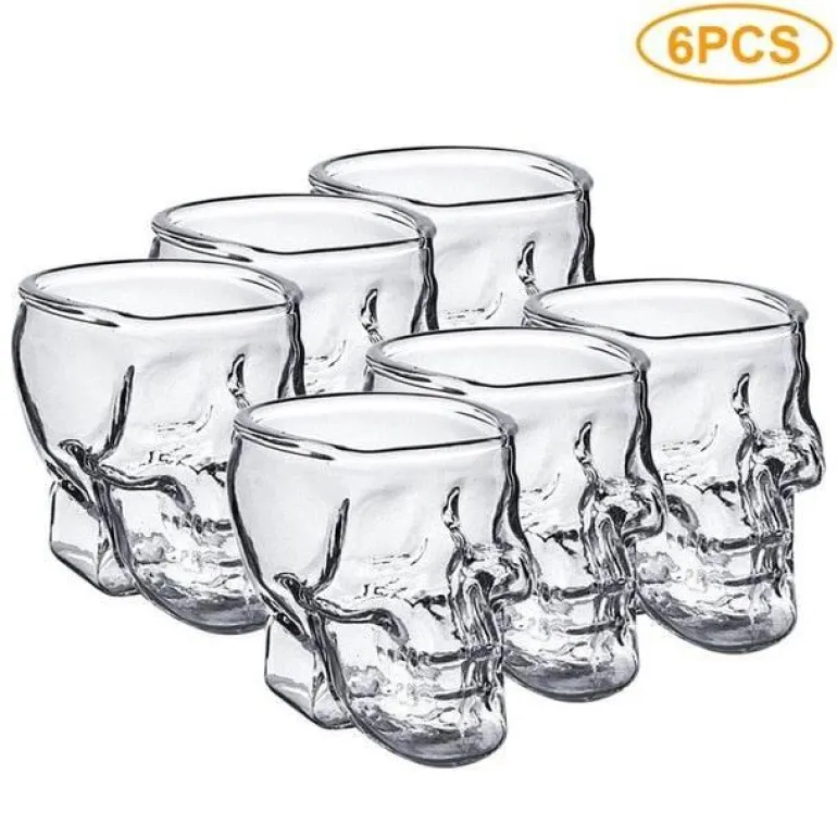 Dieses Set ist aus hochwertigem, klarem Glas gefertigt und umfasst wahlweise ein, zwei oder sechs Schnapsgläser mit je 85 ml Fassungsvermögen, die jeweils einem kunstvollen Totenkopf ähneln.