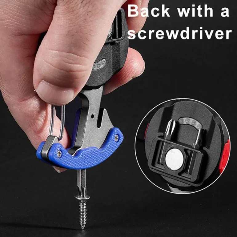 Die Typ-C-Ladeschnittstelle sorgt für effizientes Laden, während der Lithium-Polymer-Akku über eine Ladestandsanzeige verfügt und so für langanhaltende Leistung sorgt. Seine Multifunktionsfunktionen umfassen Flaschenöffner, Fensterhammer, Schraubendreher, Gurtschneider und Arbeitsleuchte und machen ihn zum idealen Begleiter für Wanderungen, Camping und Abendaktivitäten.