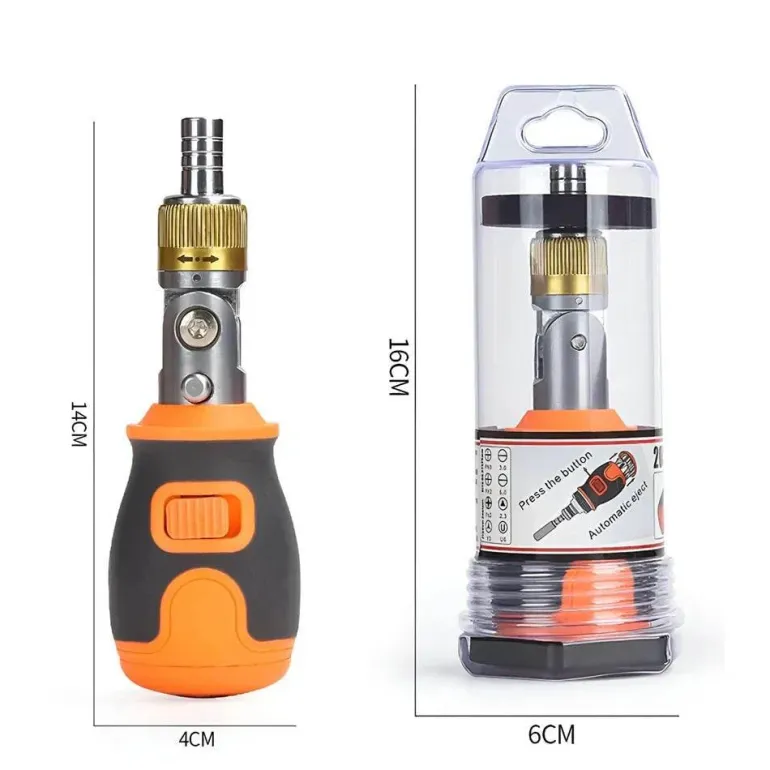 Das vielseitige Design umfasst Bits für ein breites Anwendungsspektrum. Die magnetischen Spitzen halten die Schrauben sicher an Ort und Stelle und sorgen für Präzision bei jeder Arbeit. Leicht und tragbar, lässt sich dieser Schraubendreher problemlos überallhin mitnehmen. Gefertigt aus langlebigem Chrom-Vanadium-Stahl bietet er langlebige Leistung für den täglichen Gebrauch.
