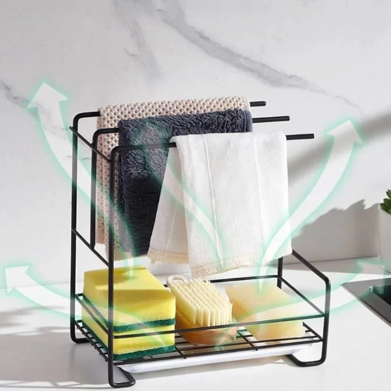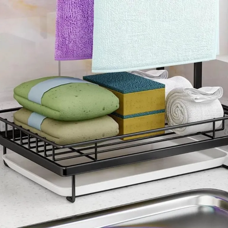 Verwandeln Sie Ihre Küchenorganisation mit diesem robusten Schwammhalter, der speziell für den Spülbereich entwickelt wurde. Dieser Spülen-Organizer aus robustem Karbonstahl bietet eine zuverlässige Lösung für die übersichtliche Aufbewahrung Ihrer Reinigungsutensilien. Der offene, hohle Boden ermöglicht einen effizienten Wasserablauf und eignet sich perfekt für Schwämme, Schrubber, Scheuerschwämme und mehr.