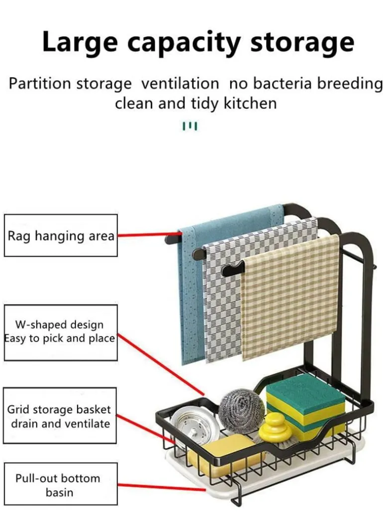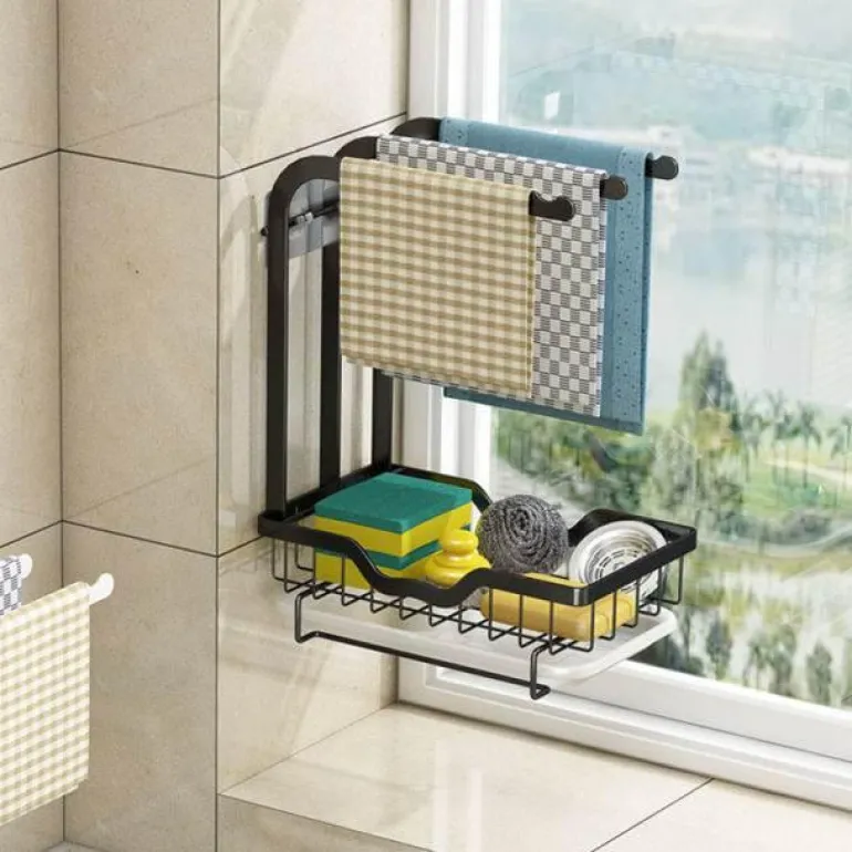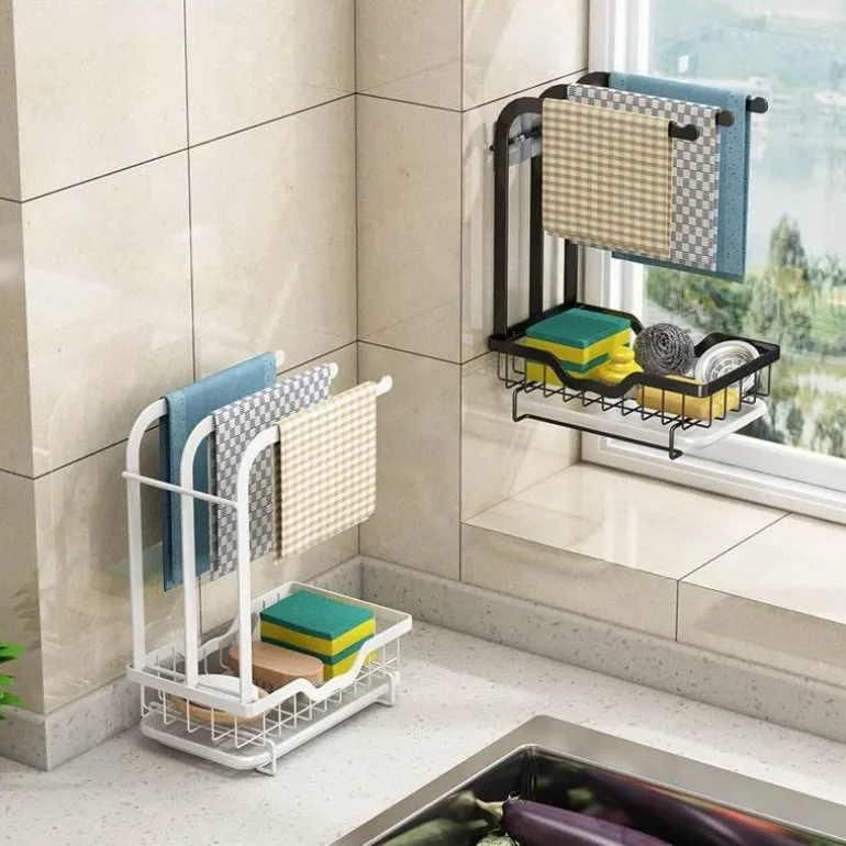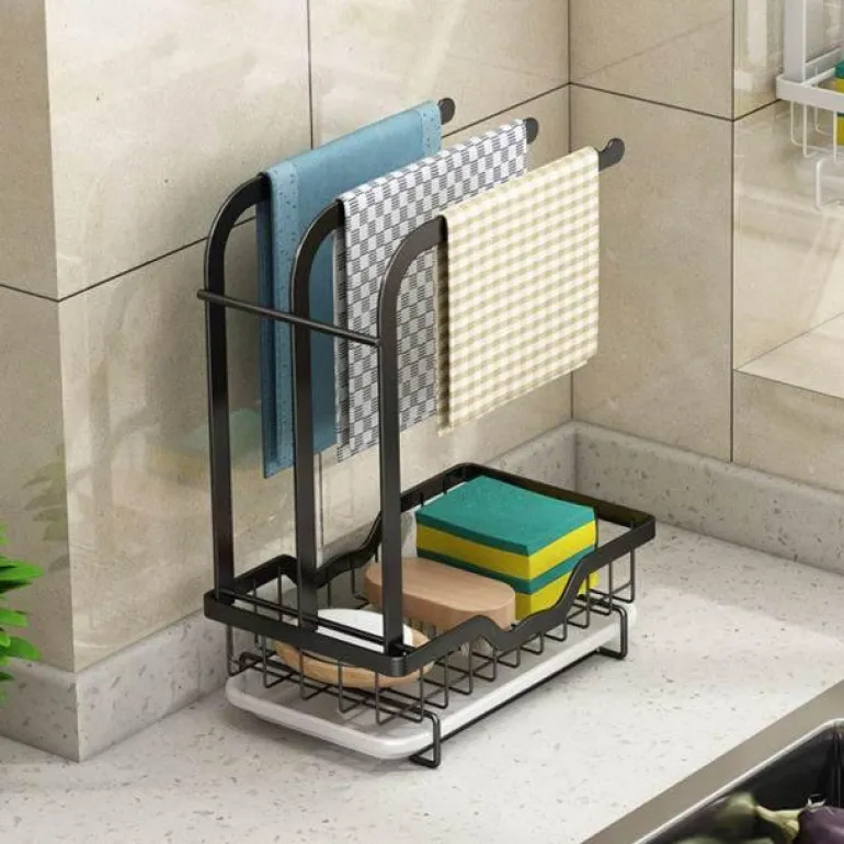 Dieses Abtropfgestell ist besonders belastbar und bietet Platz für Geschirrtücher, Schwämme und verschiedene Küchenutensilien. So können Sie Ihre Aufbewahrung zentral organisieren. Das mehrlagige Design fördert die Belüftung, sodass das Geschirr schnell trocknet und Feuchtigkeitsbildung verhindert wird.