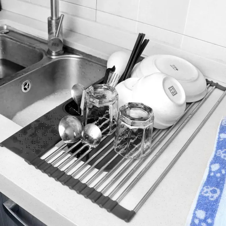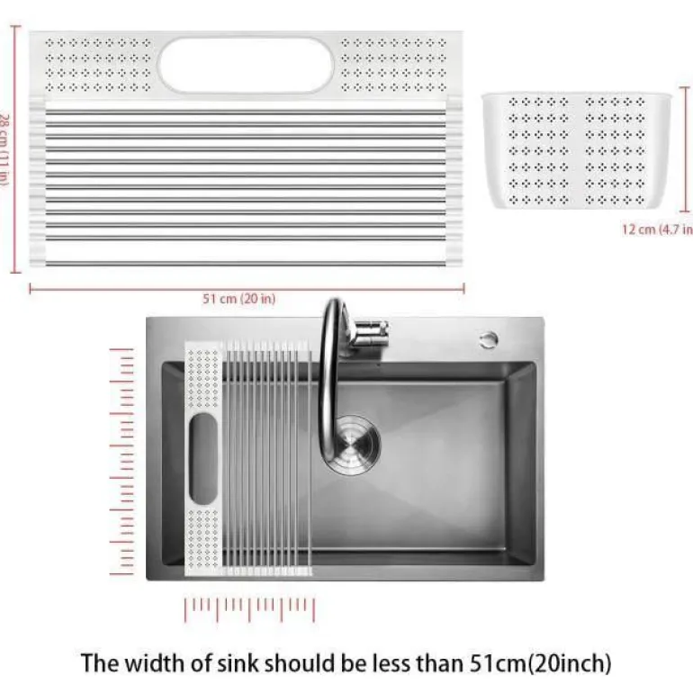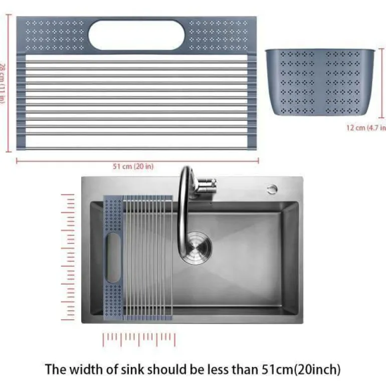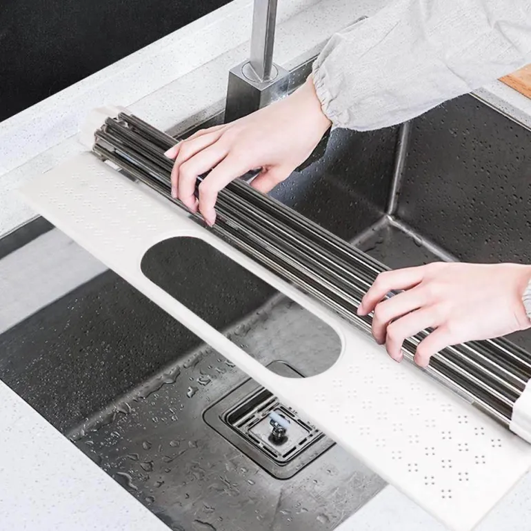 【GROSSE GRÖSSE & PLATZSPAREND】 – Mit den Maßen 50,8 x 28,9 cm passt dieses aufrollbare Abtropfgestell in die meisten Standardspülen. Wir empfehlen, Ihre Spüle vor dem Kauf auszumessen, um die Kompatibilität sicherzustellen. Nach Gebrauch lässt sich das Edelstahlgestell einfach aufrollen und in einer Schublade verstauen. So bleibt Ihre Küchenspüle ordentlich und übersichtlich. Diese praktische Lösung ist eine ausgezeichnete Wahl für eine aufgeräumte Küchentheke.