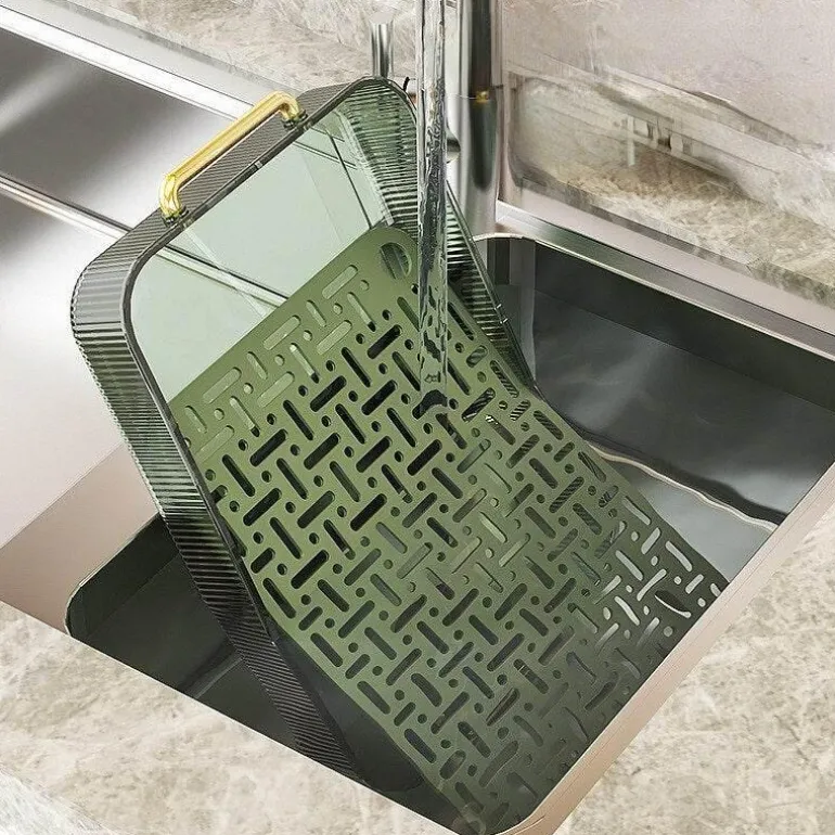 Dieses vielseitige Abtropftablett dient gleichzeitig als elegantes Serviertablett und ist somit die ideale Ergänzung für die Bewirtung von Gästen oder ein entspanntes Mittagessen in Ihrer Küche. Im minimalistischen skandinavischen Stil gefertigt, besticht es durch seine raffinierte, leichte und luxuriöse Ästhetik, die jede Einrichtung ergänzt.