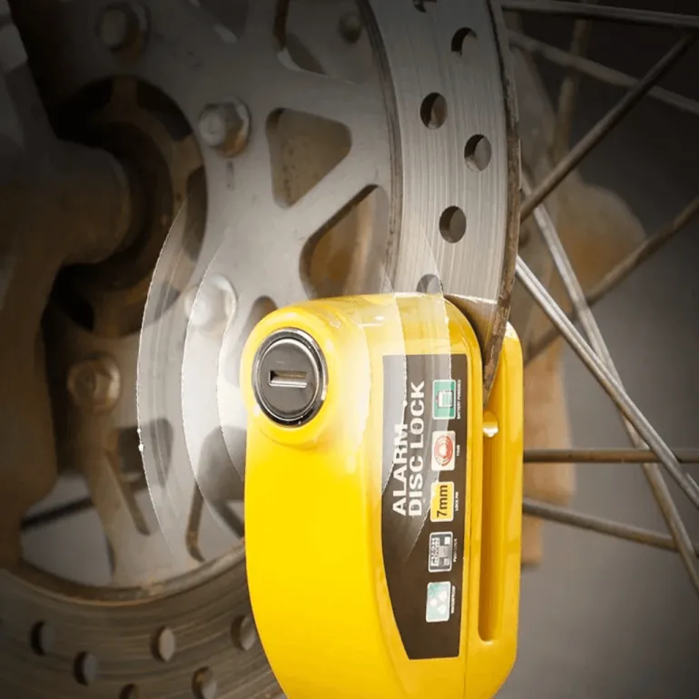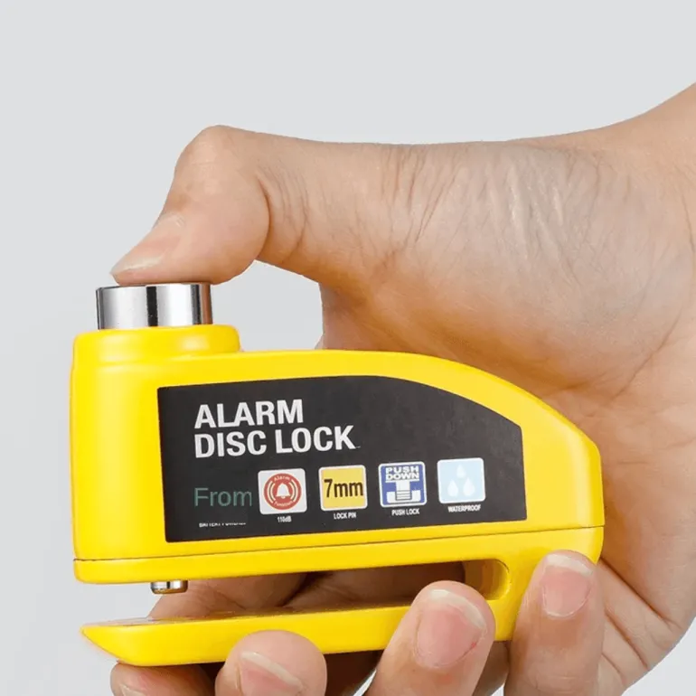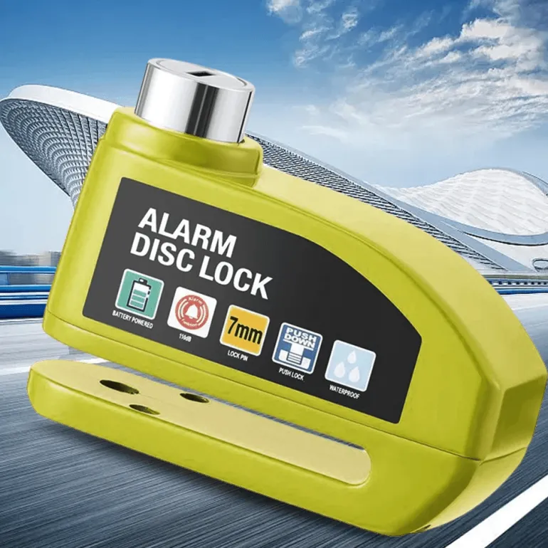 Dieses hochsichere Aluminium-Scheibenbremsenschloss mit Diebstahlalarm sorgt für ein sicheres Gefühl, wenn Sie Ihr Fahrrad unbeaufsichtigt lassen. Es besteht aus einer robusten Zinklegierung und ist zudem leicht – ideal für Radfahrer unterwegs.