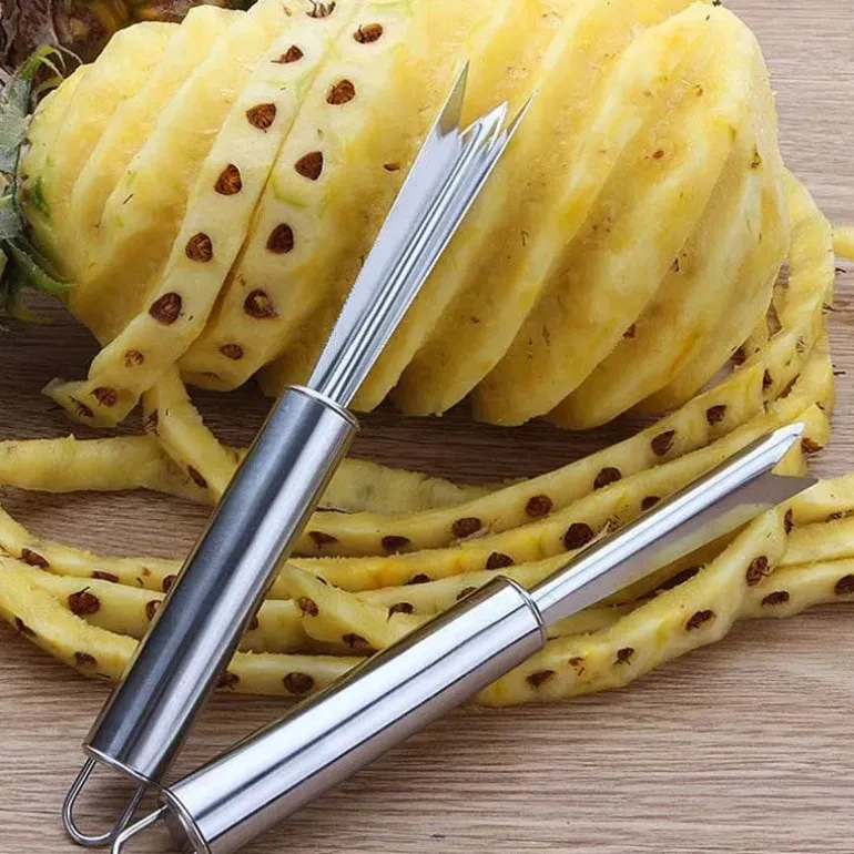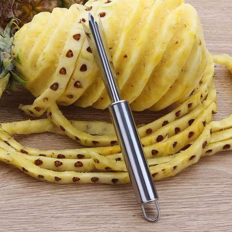 Verbessern Sie Ihre Obstzubereitung mit dem manuellen Ananasschälmesser aus hochwertigem Edelstahl. Dieser V-förmige Schäler ist ideal für alle, die den Geschmack frischer Ananas schätzen und nach einer effizienteren Methode zum Schneiden und Schälen suchen.