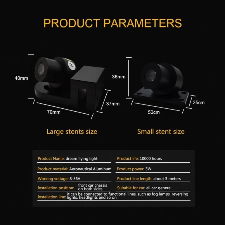 Das elegante Design dieser Lampen unterstreicht die Ästhetik Ihres Fahrzeugs. Die detailreichen Flügel erhellen Ihre Umgebung mit anmutiger Präsenz. Die naturgetreue Projektion verleiht Ihrem Fahrzeug eine einzigartige Note, die es von anderen abhebt.