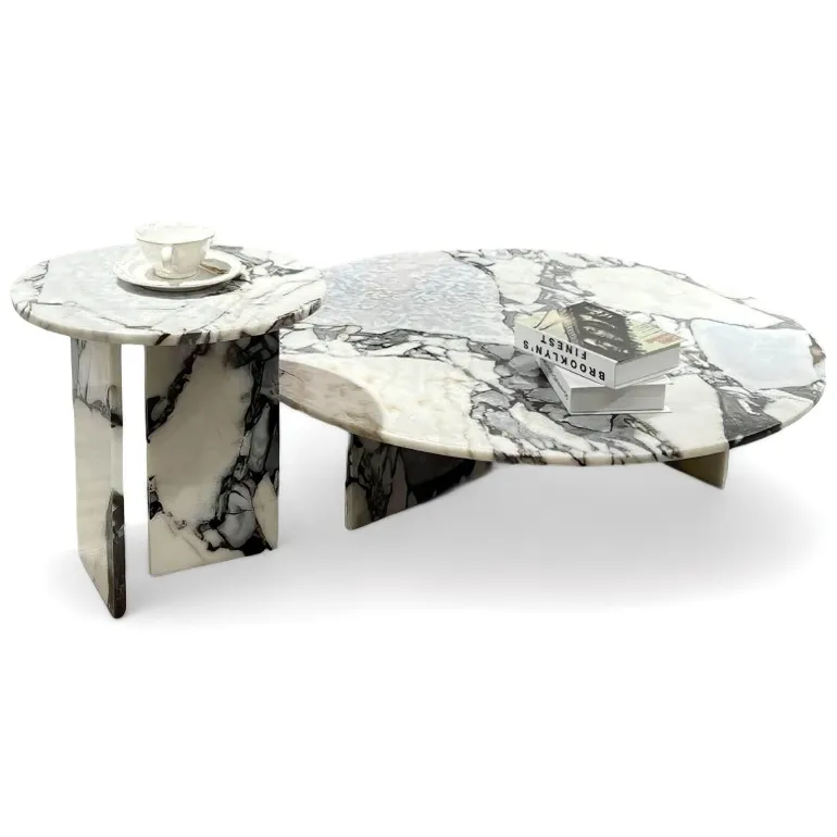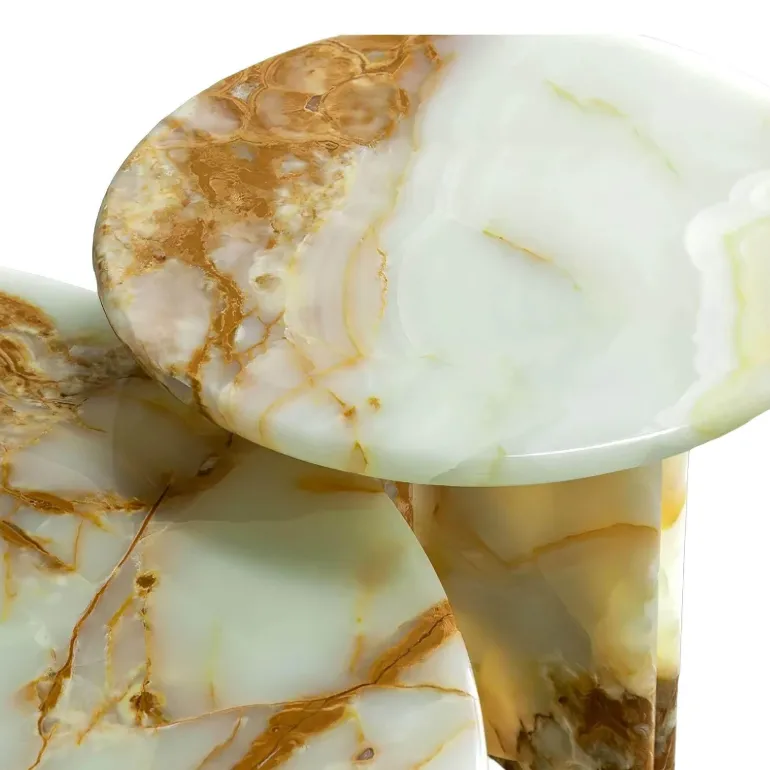 Entdecken Sie mit dem Anicee Marmor-Couchtisch und dem passenden Beistelltisch eine atemberaubende Kollektion, die Luxus und Raffinesse verkörpert. Jedes Stück präsentiert eine seltene, exklusive Marmorplatte, die für ihre faszinierenden und einzigartigen Muster bekannt ist und Ihrem Wohnraum einen Hauch von Eleganz verleiht.