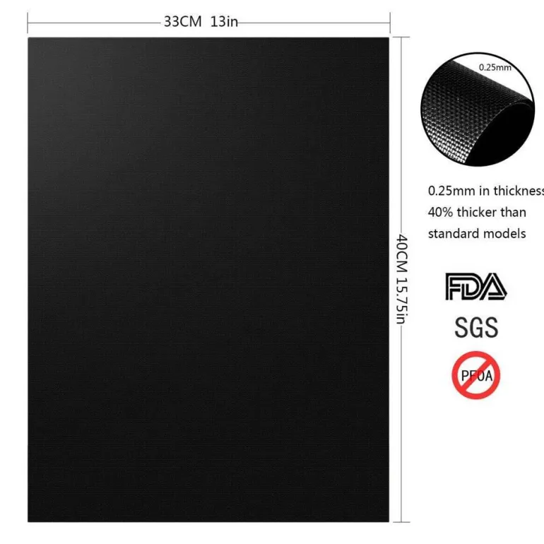 Die PTFE-beschichtete Oberfläche sorgt für ein zuverlässiges Antihaft-Kocherlebnis und sorgt dafür, dass Ihr Essen mühelos und rückstandsfrei abrutscht. Die Reinigung ist unkompliziert: Weichen Sie die Matte einfach ein und wischen Sie sie mit handelsüblichen Haushaltsreinigern ab.