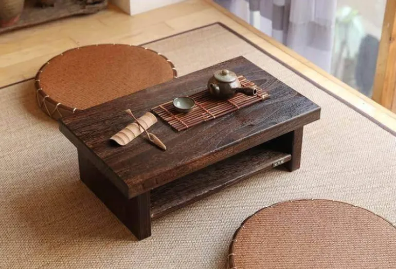 Entdecken Sie den Charme traditioneller Handwerkskunst mit diesem antiken japanischen Bodenteetisch. Sein wunderschönes Design wertet das Ambiente Ihres Wohnraums auf. Dieser rechteckige Couchtisch aus Holz schafft eine gemütliche Atmosphäre in Ihrem Wohnzimmer und bietet die ideale Ablagefläche für Tee oder Kaffee. Seine kompakten Abmessungen machen ihn vielseitig einsetzbar und lassen sich problemlos in verschiedene Raumgestaltungen integrieren.