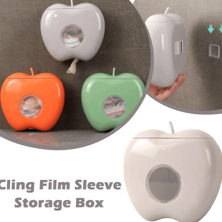 1x Apfelförmiger Wandspender für Frischhaltefolie.
