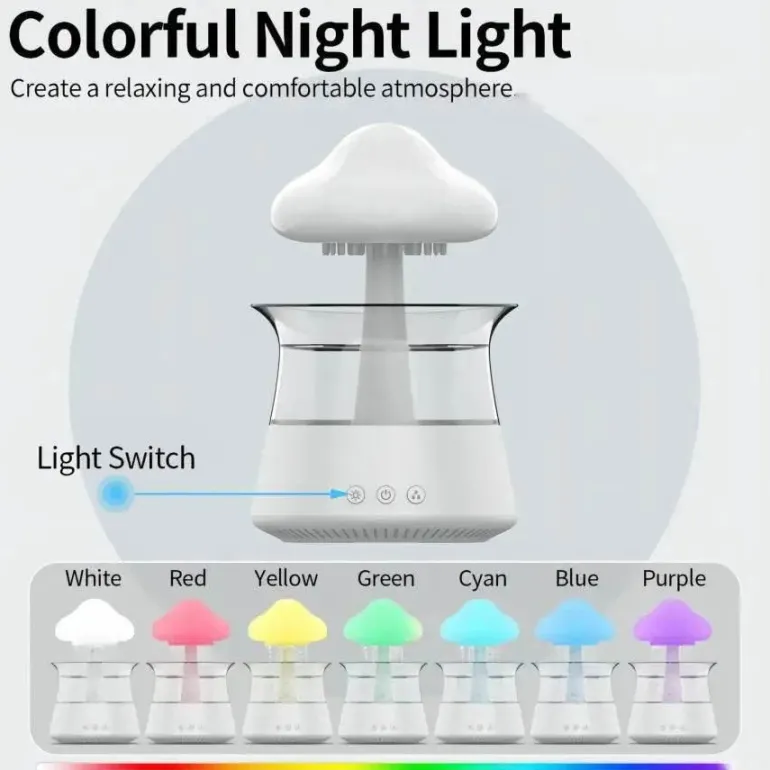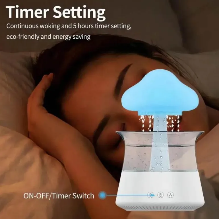 Verwandeln Sie Ihr Zuhause mit der Relax Cloud Regendiffusorlampe in eine ruhige Oase. Dieses elegante Gerät kombiniert wohltuende Aromatherapie, Luftbefeuchtung und beruhigende Regengeräusche und sorgt so für Ruhe und Entspannung in jedem Raum. Erleben Sie die harmonische Mischung aus sanften Klängen, einladenden Aromen und verbesserter Luftqualität – eine Spa-ähnliche Atmosphäre, die zum Entspannen und Erholen einlädt.