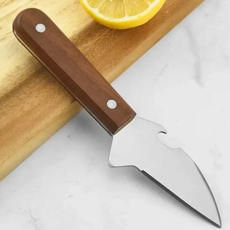 Entdecken Sie ein sorgfältig gefertigtes Austernmesser mit komfortablem Holzgriff, das das Öffnen von Schalentieren mühelos und angenehm macht. Dieses unverzichtbare Meeresfrüchte-Werkzeug ist aus hochwertigen Materialien gefertigt und garantiert Langlebigkeit und Effizienz sowohl für den gelegentlichen Verzehr als auch für den professionellen Koch.