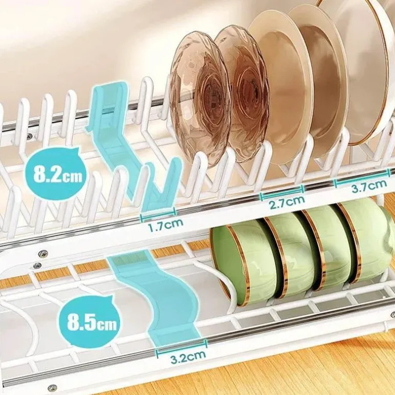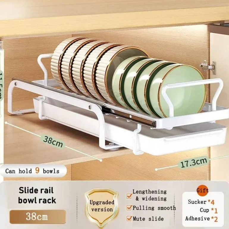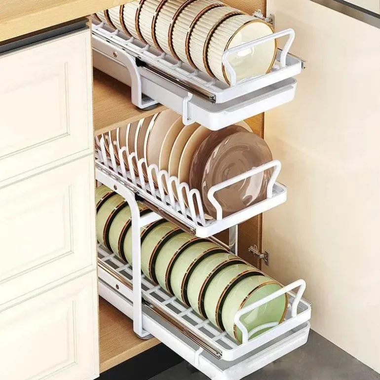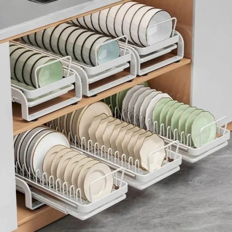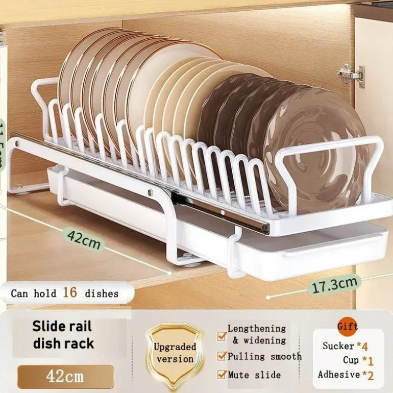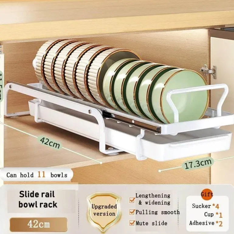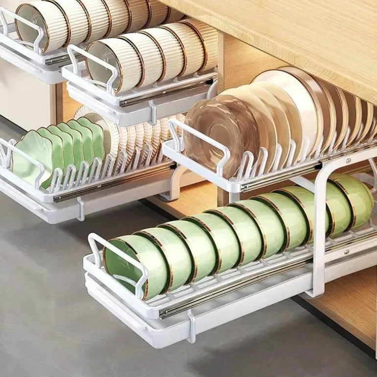 Bringen Sie Ordnung in Ihre Küche mit diesem verschiebbaren Geschirrständer, der sich nahtlos in Ihre Küchenschränke integrieren lässt. Dieser innovative Geschirrständer bietet eine effiziente Möglichkeit, Teller, Schüsseln und Küchenutensilien aufzubewahren, den verfügbaren Platz optimal zu nutzen und gleichzeitig einfachen Zugriff zu gewährleisten. Der leichtgängige Schiebemechanismus ermöglicht müheloses Entnehmen und sorgt so für Ordnung in der Küche und stets griffbereite Gegenstände.