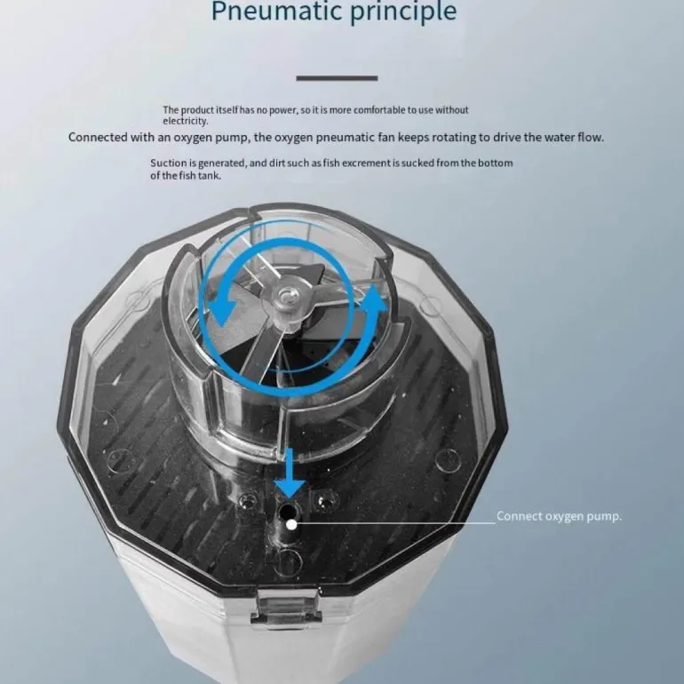 Die Einrichtung des Geräts ist einfach: Stellen Sie es einfach in Ihr Aquarium und schließen Sie es an eine Luftpumpe an. Sobald das Abfallfach voll ist, lässt es sich leicht entleeren und desinfizieren. So ist eine gründliche Reinigung gewährleistet, bevor es wieder in Ihrem Becken eingesetzt wird.