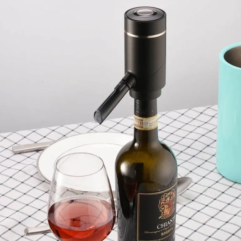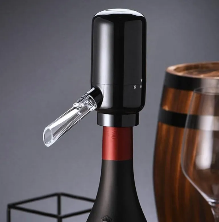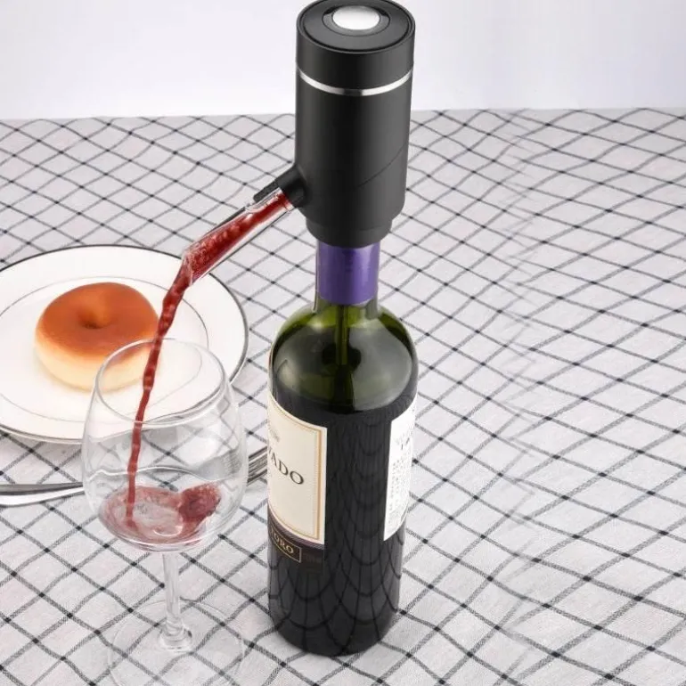 Der elegante automatische, intelligente elektrische Getränkespender ist die raffinierte Lösung, um Ihre Gäste mit Flüssigkeit und Zufriedenheit zu versorgen. Dieses innovative Gerät füllt Behälter automatisch mit Wasser und gibt es nahtlos aus – für müheloses Servieren. Sein einzigartiges Pumpsystem führt Luft in die Flasche, um die Belüftung zu verbessern und so eine achtmal größere Oxidationsoberfläche im Vergleich zu herkömmlichen Trichtern zu schaffen. Dank seines doppelten Saug- und Infusionsmechanismus hinterlässt er effektiv Ablagerungen, sodass kein Umfüllen erforderlich ist.
