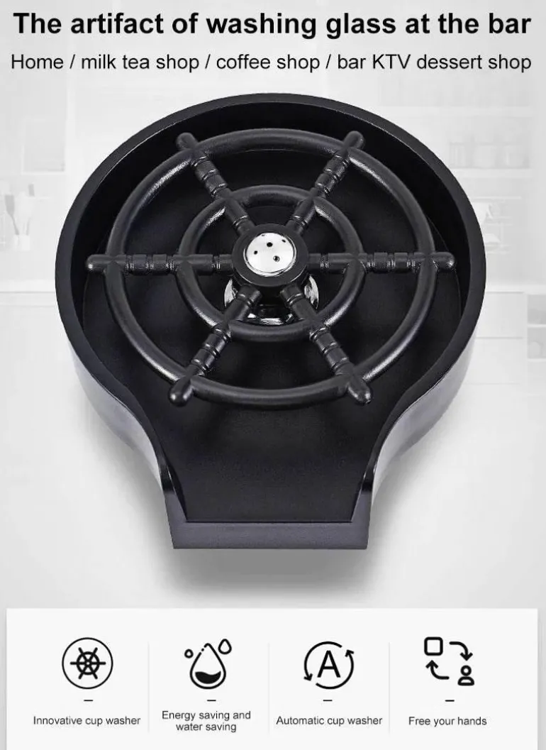 Dieses vielseitige Gerät eignet sich perfekt zum Spülen von Tassen in verschiedenen Umgebungen, darunter Bars, Cafés, Restaurants, Privathaushalte, Teehäuser und Hotels. Es funktioniert ohne Strom und benötigt nur kaltes Wasser und ist somit umweltfreundlich. Ideal für Rotweingläser, Biergläser, Kaffeetassen, Milchkännchen, Getränkebecher und Teetassen – eine unverzichtbare Ergänzung für jeden Getränkeservice-Bereich.