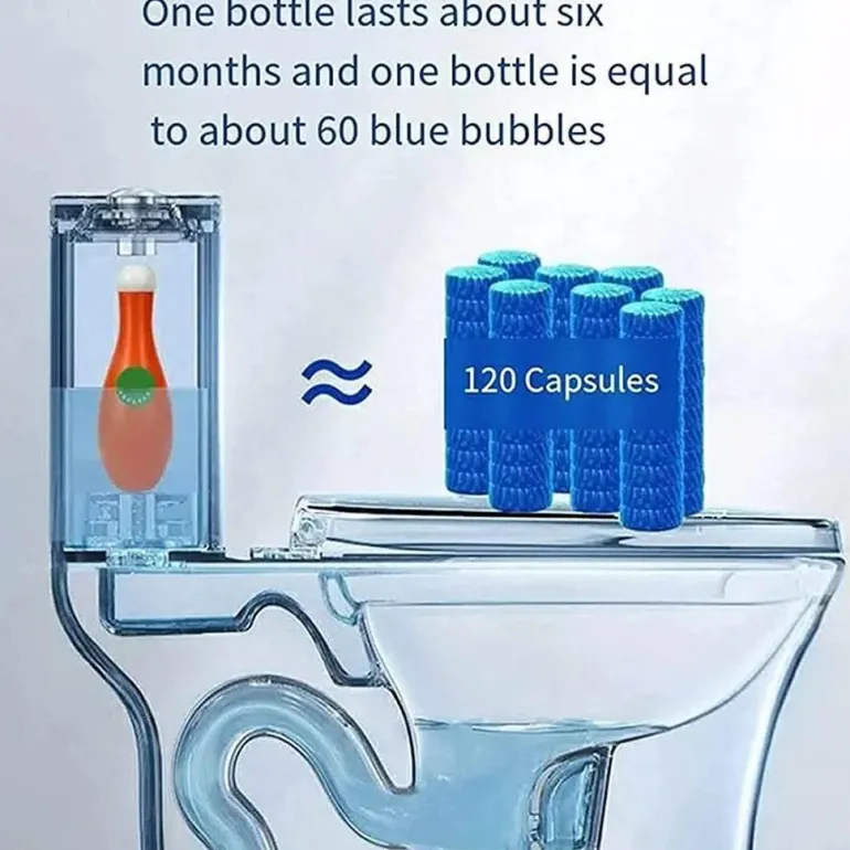 Der Reiniger hat die einzigartige Form einer Bowlingkugel und ist in leuchtend blauer Seifenblasenform erhältlich. Jede Flasche hält bis zu sechs Monate und verströmt bei jedem Spülen einen dezenten, angenehmen Duft. Neben der Reinigung der Toilette hilft er effektiv, unangenehme Gerüche zu beseitigen, insbesondere in Kombination mit einer Toilettenbürste.