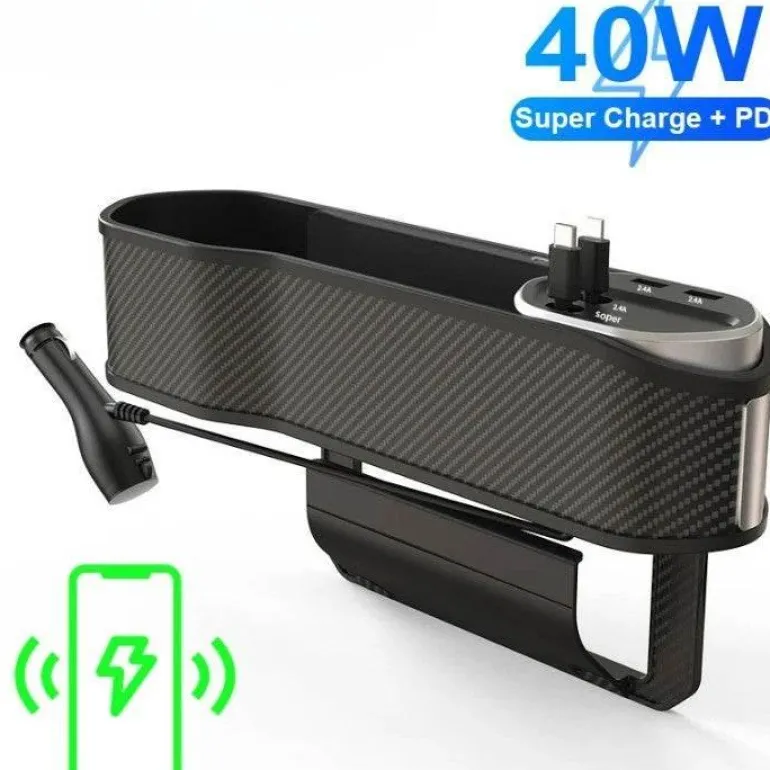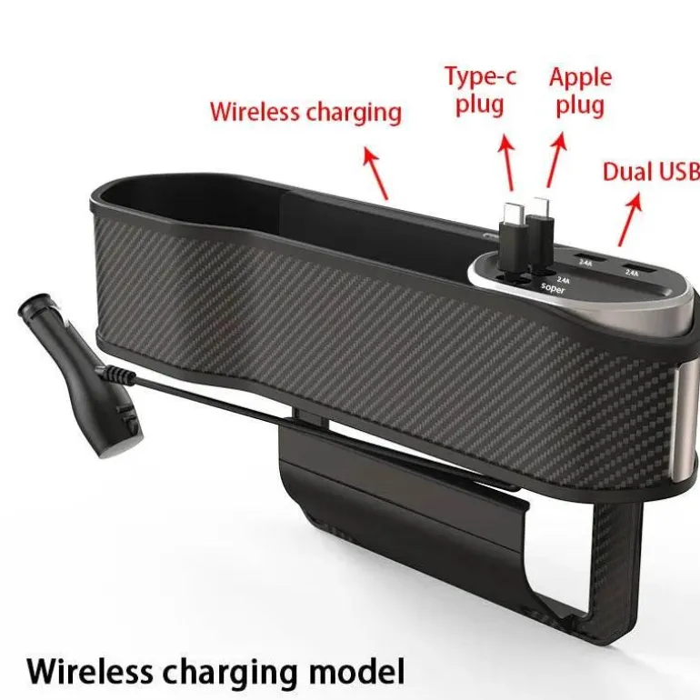 Wir präsentieren den Car Seat Gap Organizer mit kabellosem Ladegerät und Getränkehalter – die ideale Lösung für einen aufgeräumten Autoinnenraum und gleichzeitig für stets geladene Geräte. Dieser innovative Organizer passt perfekt in die oft übersehene Lücke zwischen Ihren Autositzen und ermöglicht Ihnen so einfachen Zugriff auf Ihre wichtigen Dinge und sorgt gleichzeitig für Ordnung. Erleben Sie die perfekte Kombination aus Funktionalität und Technologie auf Ihren täglichen Fahrten und längeren Roadtrips.