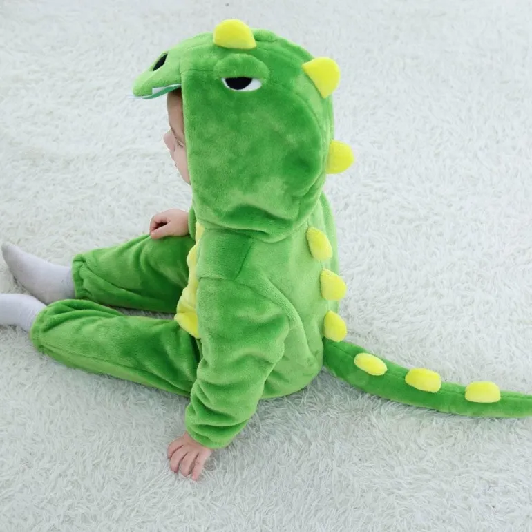 Dinosaurier-Fans werden diesen bezaubernden Baby-Dinosaurier-Body lieben – perfekt für die Verkleidungsabenteuer Ihres Kindes. Aus weichem, kuscheligem Flanellmaterial gefertigt, bietet er Komfort und Wärme für Partys, Halloween oder das alltägliche Fantasiespiel. Die Druckknöpfe erleichtern das An- und Ausziehen Ihres Babys und sorgen für ein schnelles und unkompliziertes An- und Ausziehen. Beobachten Sie, wie Ihr Kind in diesem verspielten Dinosaurierkostüm alle Blicke auf sich zieht.