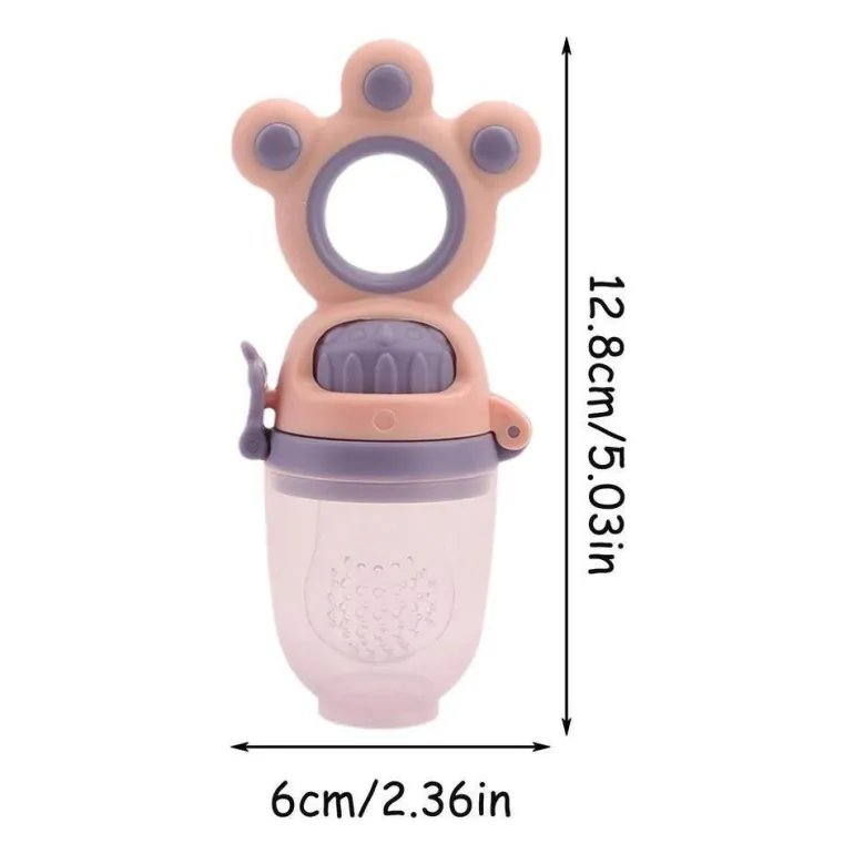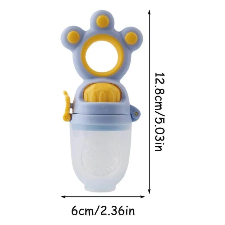 Dieser sichere Fütterer aus BPA-freiem Silikon sorgt dafür, dass Ihr Kind beruhigt neue Geschmacksrichtungen und Texturen entdecken kann. Dank seiner kompakten Größe von 12,8 cm x 6 cm (5,03 x 2,36 Zoll) lässt er sich leicht von kleinen Händen greifen und bedienen und fördert so die Unabhängigkeit beim Essen.