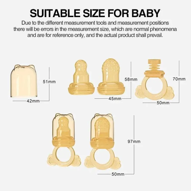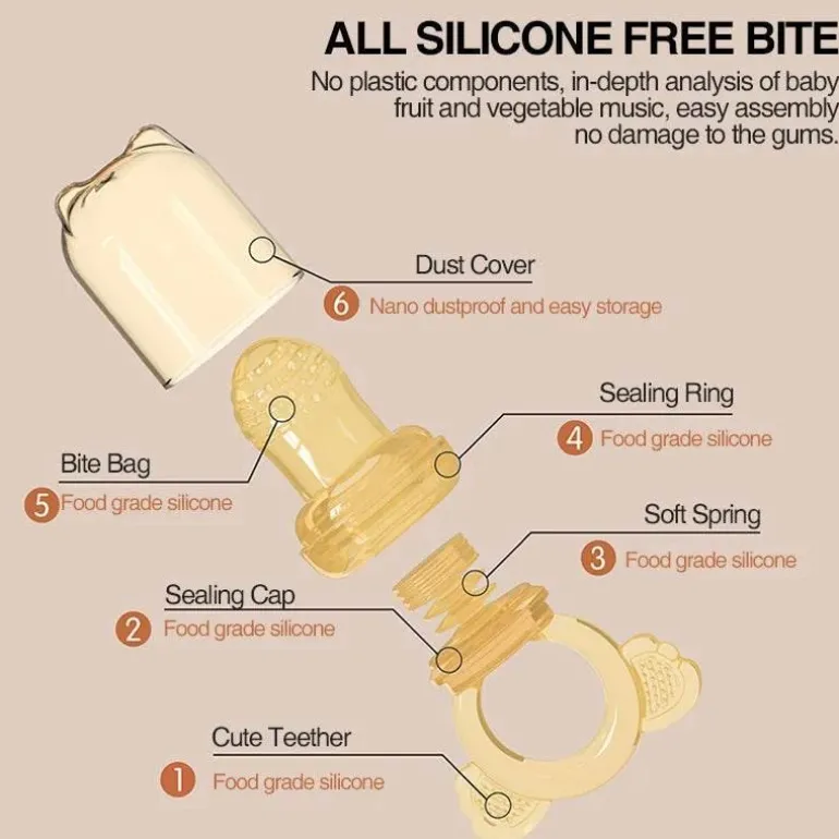 Im Lieferumfang ist ein tragbarer Baby-Obstsauger enthalten, der Ihrem Baby hilft, die Freude an Obst zu entdecken. Gestalten Sie Ihre Mahlzeiten mit dieser praktischen Lösung für Ihr Zuhause spannend und angenehm. Entdecken Sie mehr bei Decor .