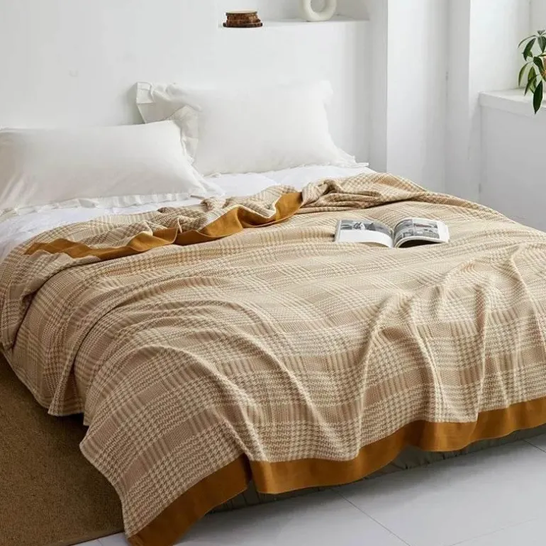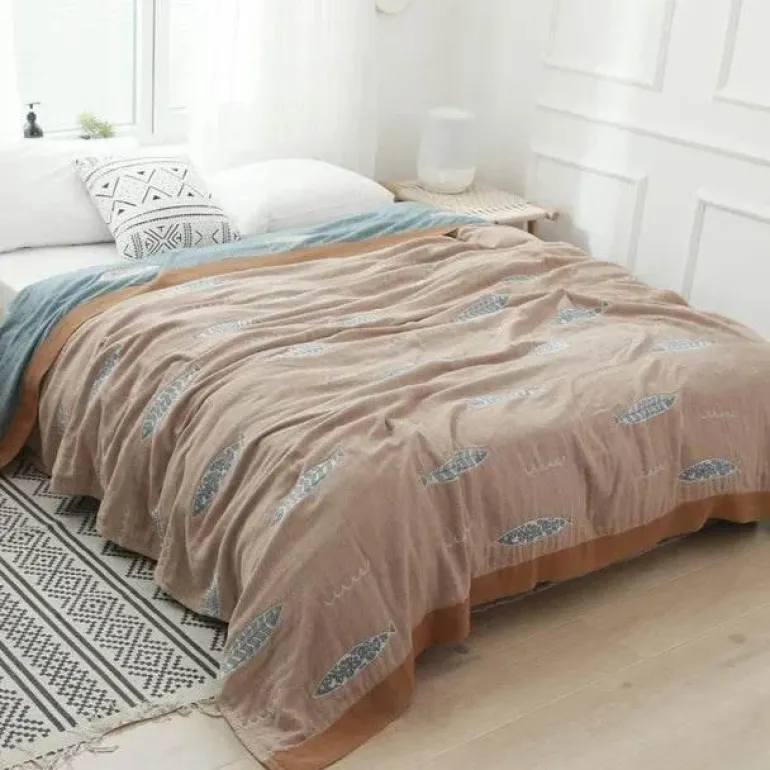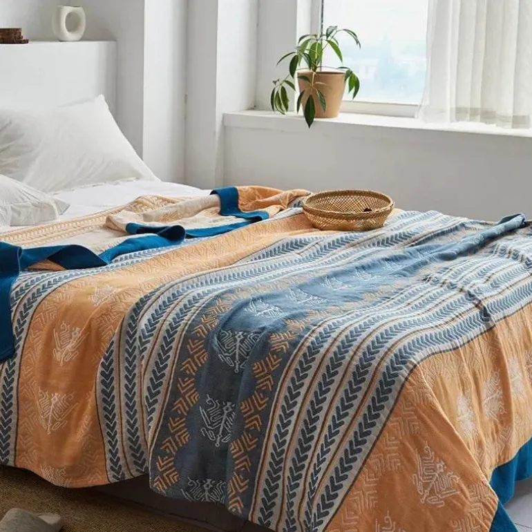 Wir präsentieren die Baumwollgaze-Überwurfdecke – eine vielseitige und stilvolle Ergänzung für Ihre Wohnkultur. Aus 100 % hochwertiger Baumwolle gefertigt, bietet diese Decke ein kuscheliges und kuscheliges Gefühl und sorgt das ganze Jahr über für Komfort – sie wärmt in den kühleren Monaten und ist in der wärmeren Jahreszeit leicht.