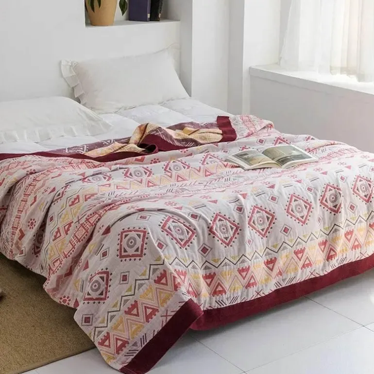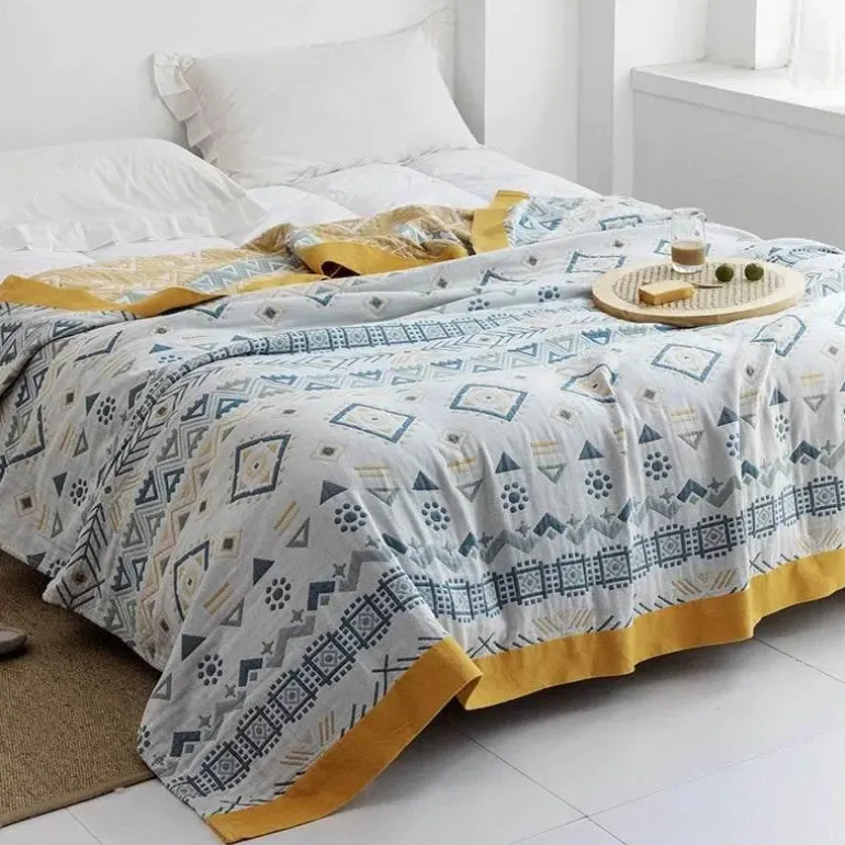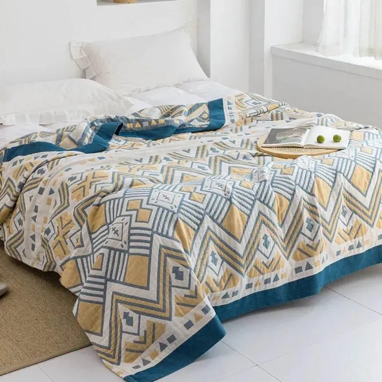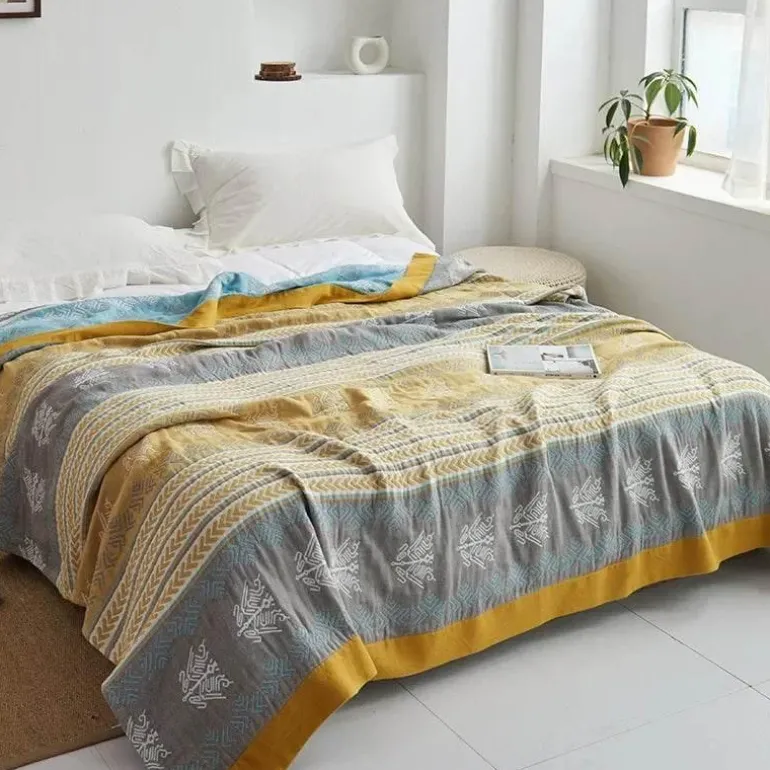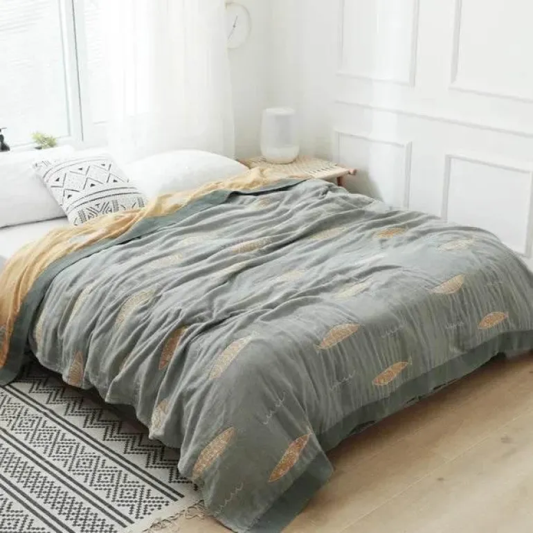 Ob Sie es sich zu Hause gemütlich machen, im Hotel entspannen, im Flugzeug reisen oder im Krankenhaus sind – die Baumwollgaze-Überwurfdecke bereichert Ihr Wohnerlebnis mit ihrer perfekten Kombination aus Komfort und Stil. Verschönern Sie Ihren Wohnraum mit diesem unverzichtbaren Accessoire, das Funktionalität mit elegantem Design verbindet.
