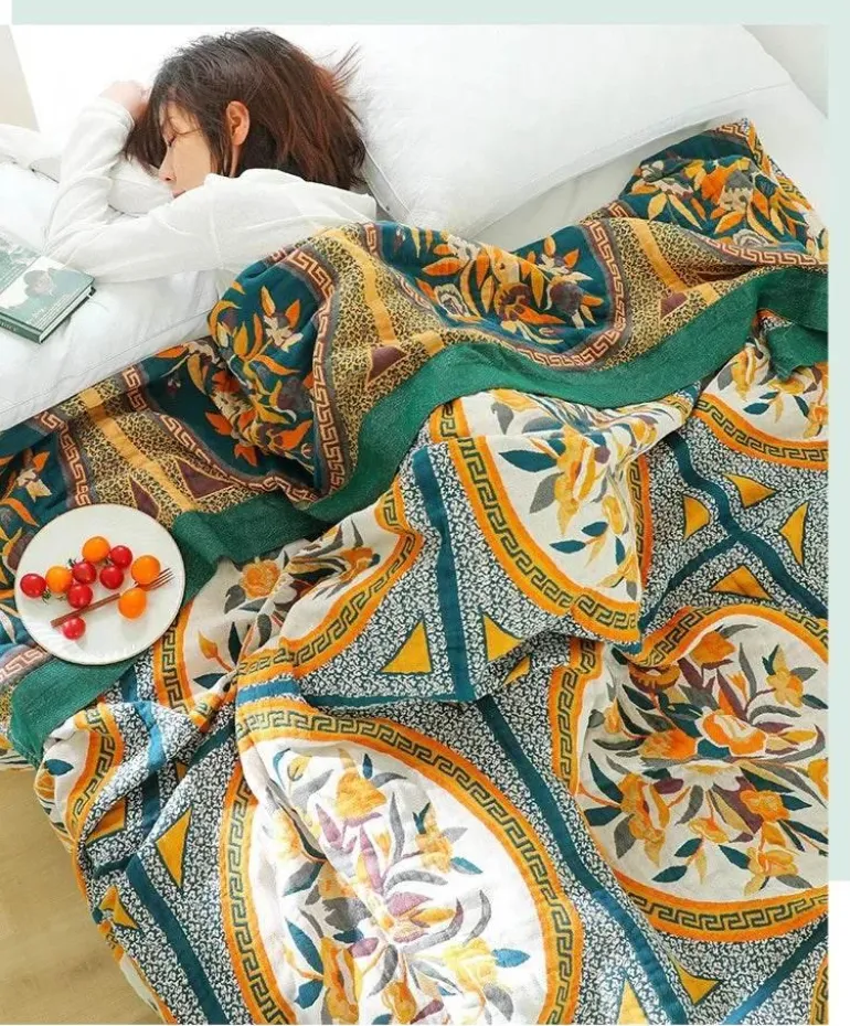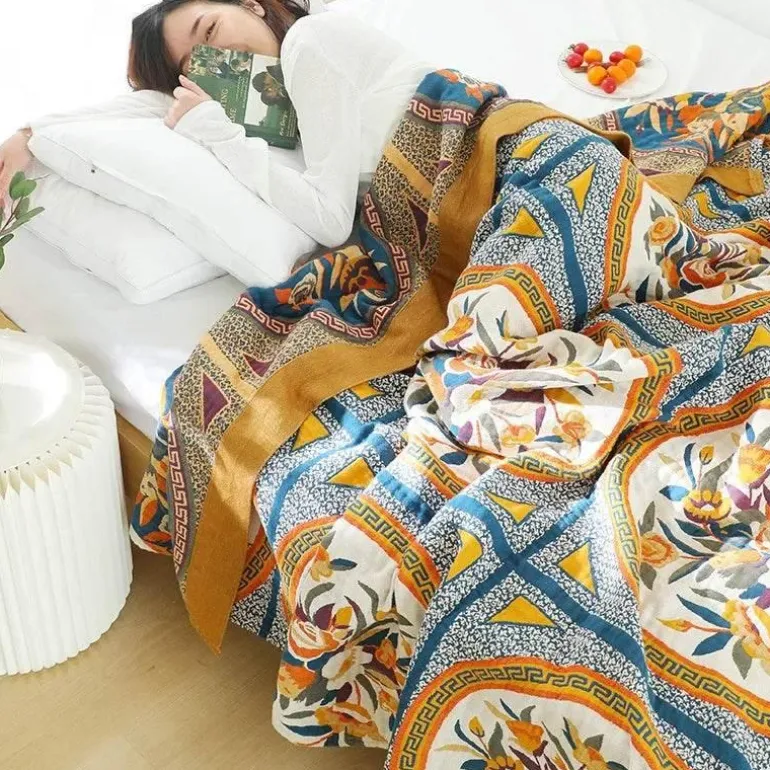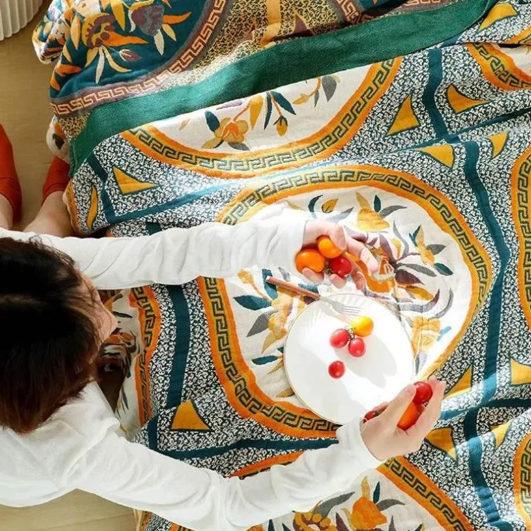 Die Pflege dieser eleganten Decke ist kinderleicht: Waschen Sie sie einfach mit der Hand, um ihre leuchtenden Farben und ihre Qualität zu erhalten. Ob Sie es sich drinnen mit einem spannenden Buch gemütlich machen oder draußen die Sonne genießen – diese Baumwollgaze-Decke ist ein Must-have für alle, die Komfort und Stil gleichermaßen schätzen. Werten Sie Ihren Wohnraum mit diesem vielseitigen Stück auf, das Eleganz und Alltagstauglichkeit mühelos vereint. Entdecken Sie praktische Lösungen für Ihr Zuhause bei Decor .