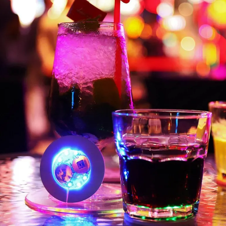 Jeder Untersetzer ist mit vier ultrahellen LED-Leuchten ausgestattet, die transparente Behälter wie Weinflaschen, Weingläser und Sektflöten beleuchten und so einen atemberaubenden visuellen Effekt erzeugen. Dank der beeindruckenden Akkulaufzeit von über 24 Stunden können diese Untersetzer die Party die ganze Nacht über ohne Unterbrechung weiterlaufen lassen.