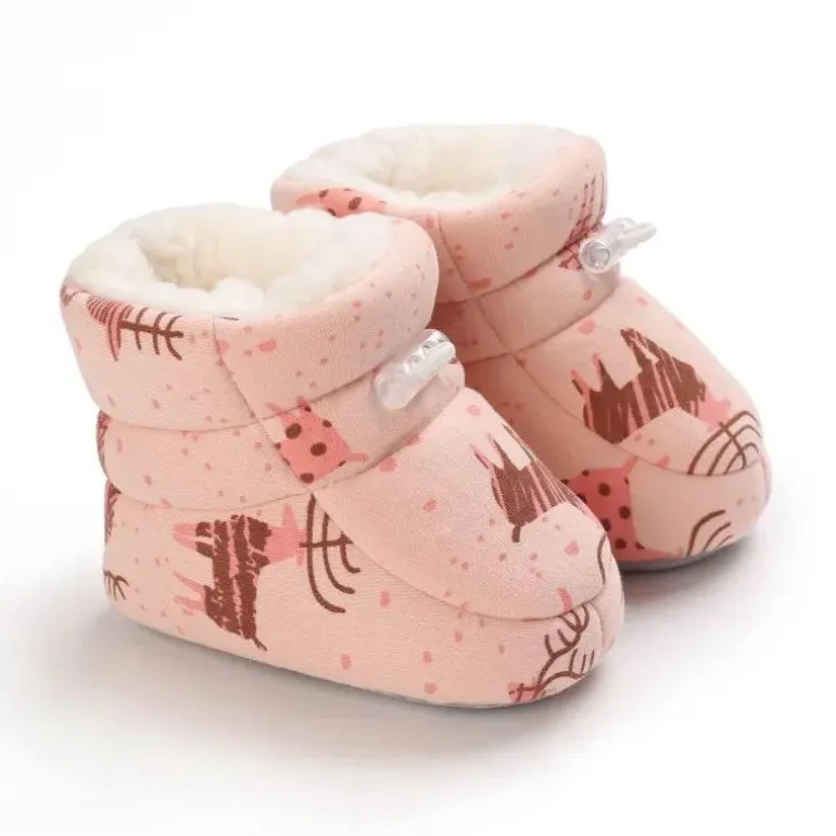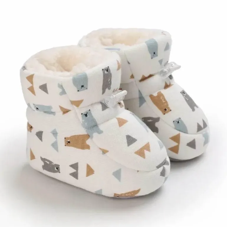 Diese Winterstiefel für Babys sind so konzipiert, dass sie die Füße Ihres Babys in den kalten Monaten warm und geschützt halten. Sie bestehen aus weichem, isolierendem Baumwollstoff und verfügen über einen sicheren und bequemen Gummibandverschluss, der Ihrem Baby bei Winterausflügen einen bequemen Sitz garantiert. Das kuschelige Material wärmt sanft und macht sie ideal für kühle Tage im Freien.