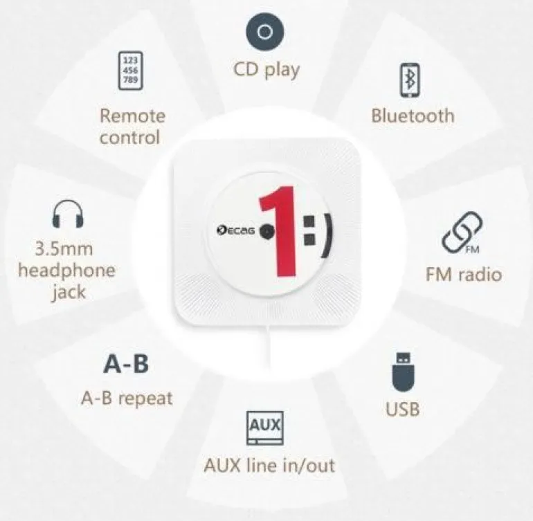 Verbessern Sie Ihr Klangerlebnis mit diesem innovativen Bluetooth-CD-Player-Lautsprecher, der Stil und Funktionalität vereint. Dank des wandmontierbaren Designs mit Montagesatz und stabilem Ständer können Sie ihn mühelos an der Wand aufstellen oder auf dem Schreibtisch platzieren. Dieses elegante Soundsystem bietet nicht nur hochwertigen Klang, sondern ist auch ein schickes Dekorationsstück, das jeden Raum optisch aufwertet.