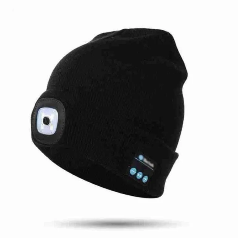 1 x Unisex-Mütze mit Bluetooth-Lautsprecher und Stirnlampe.