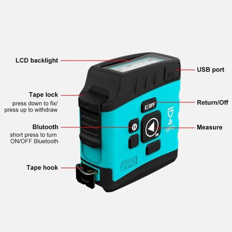 Entdecken Sie die Leichtigkeit präziser Messungen mit unserem Bluetooth-Maßband, einem intelligenten und effizienten digitalen Messwerkzeug für einfache Bedienung. Schalten Sie es einfach ein und drücken Sie die Bedientaste, um Entfernungen schnell und präzise zu messen. Das kompakte Design liegt angenehm in der Hand und ermöglicht eine mühelose Handhabung. Das gut lesbare LCD-Display sorgt für klare Sicht, selbst bei schlechten Lichtverhältnissen oder Regen. Dieses vielseitige Werkzeug eignet sich ideal für vielfältige Anwendungen, darunter Heimwerkerprojekte, Bauarbeiten und Heimdekoration.