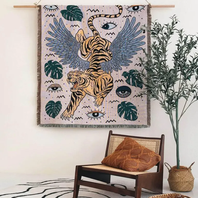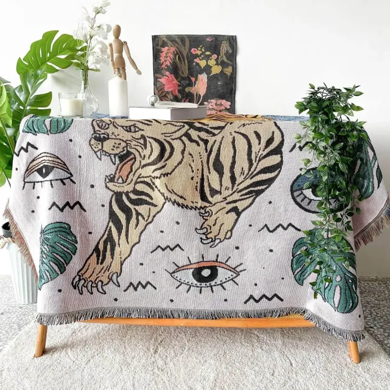 Wir präsentieren die Bohemian Outdoor Decke, einen luxuriösen Gobelin-Teppich, perfekt für Outdoor-Fans, die Stil und Komfort schätzen. Hergestellt aus einer hochwertigen Polyester-Baumwoll-Mischung, wertet diese Decke Ihre Campingausflüge, Picknicks oder sogar Ihre Wohnkultur mit ihrem raffinierten Design auf.