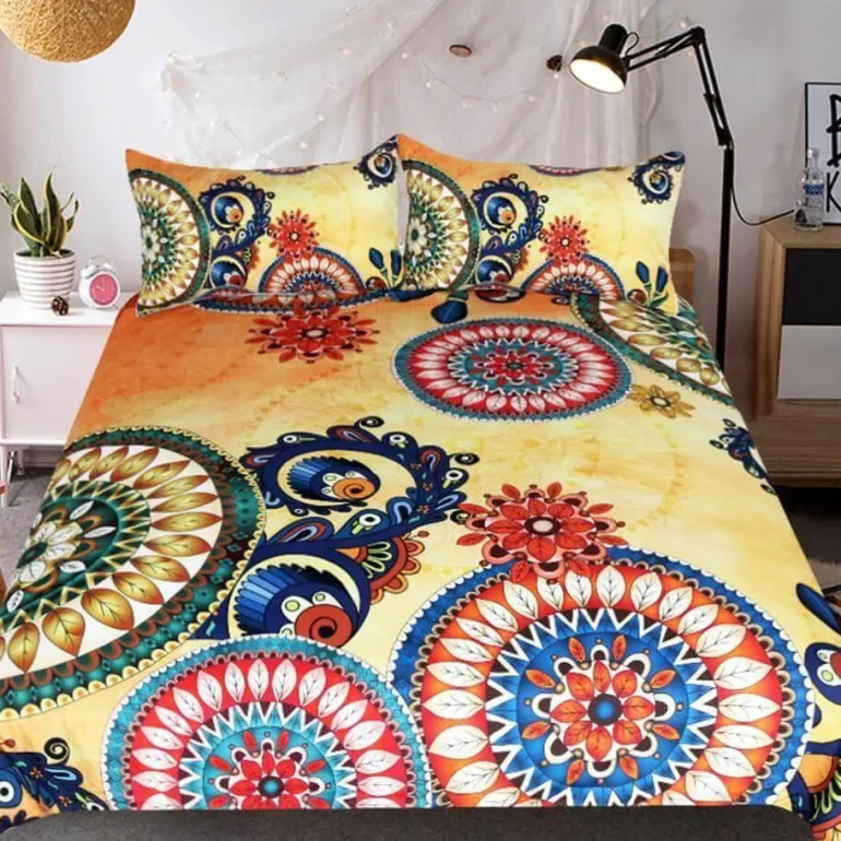 Verschönern Sie Ihr Schlafzimmer mit dem Bohemian Indian Bettbezug-Set von BeddingOutlet. Es verleiht Ihrem Raum einen Hauch von ethnischem Charme und Komfort. Dieses Bettbezug-Set aus hochwertiger Mikrofaser besticht durch sein einzigartiges Druckmuster, das Ihrer Bettwäsche eine lebendige und zugleich beruhigende Ästhetik verleiht.