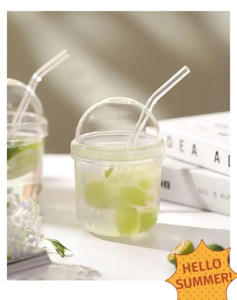 Genießen Sie Ihre Getränke unbesorgt in dem Wissen, dass diese robusten Glasbecher für eine lange Lebensdauer ausgelegt sind. Der mitgelieferte Deckel und Strohhalm bieten zusätzlichen Komfort und ermöglichen Ihnen, Ihre Getränke unterwegs oder zu Hause kleckerfrei zu genießen.