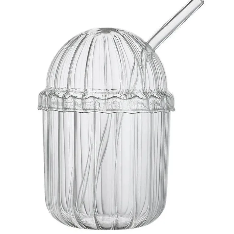 Wir präsentieren unseren vertikal gestreiften Borosilikatglasbecher mit Deckel und Strohhalm, kunstvoll gefertigt aus hochwertigem Borosilikatglas. Verschönern Sie Ihr Getränkeerlebnis zu Hause mit diesen stilvollen und funktionalen Bechern – perfekt für jeden Anlass.