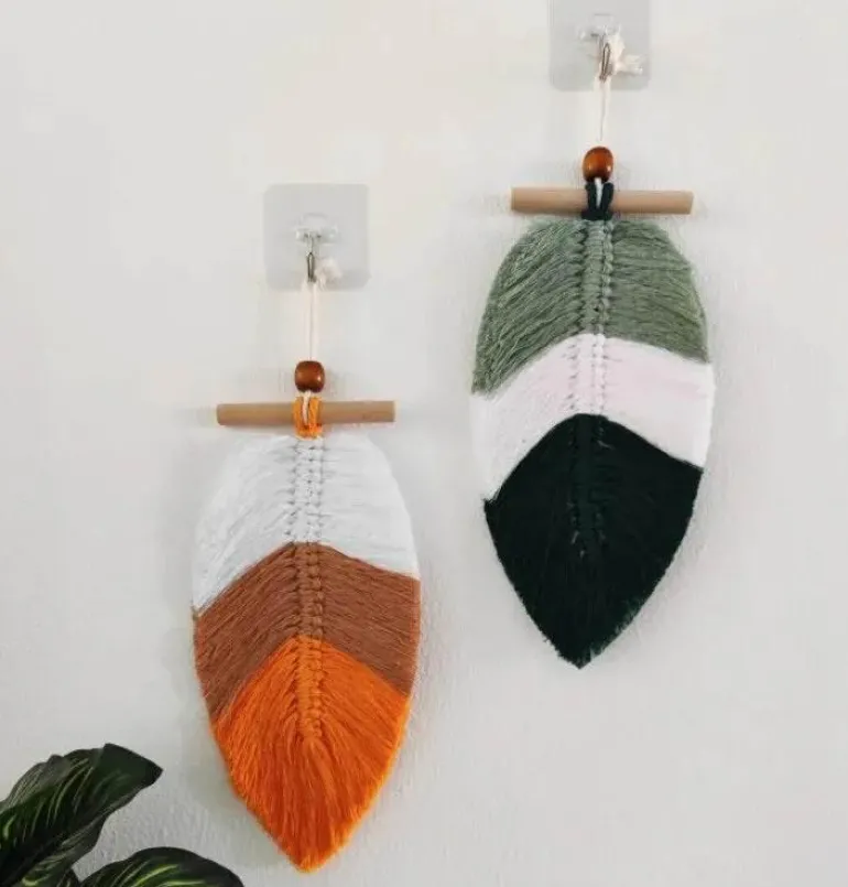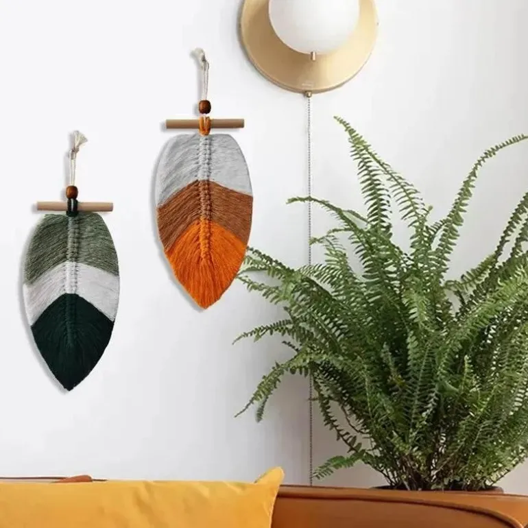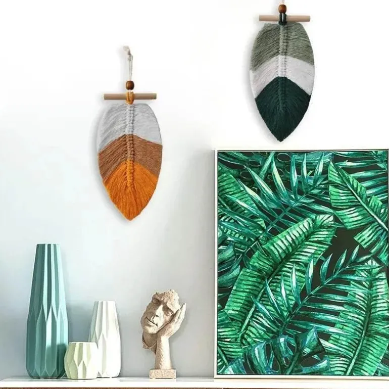 Verleihen Sie Ihrem Zuhause mit unserem Set aus zwei bunten gewebten Blättern einen lebendigen Hauch von Farbe und Struktur. Diese handgefertigten Dekostücke aus natürlichem Baumwollfaden verkörpern eine unkonventionelle und organische Ästhetik und eignen sich perfekt für verschiedene Räume wie Wohnzimmer, Schlafzimmer, Büro oder Wartebereich.