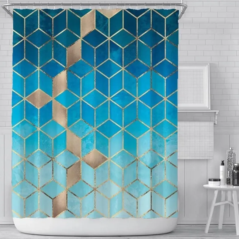 Verwandeln Sie Ihr Badezimmer mit diesem eleganten Duschvorhang, der einen Hauch römisch inspirierten Dekors in Ihr Zuhause bringt. Das Kunstwerk zeigt eine fesselnde Darstellung rauschender Wellen, kunstvoll in ruhigen Blau- und Weißtönen gehalten. Dieses Design fängt die dynamische Energie des Ozeans ein und schafft eine beruhigende Atmosphäre, die das Ambiente Ihres Badezimmers unterstreicht.