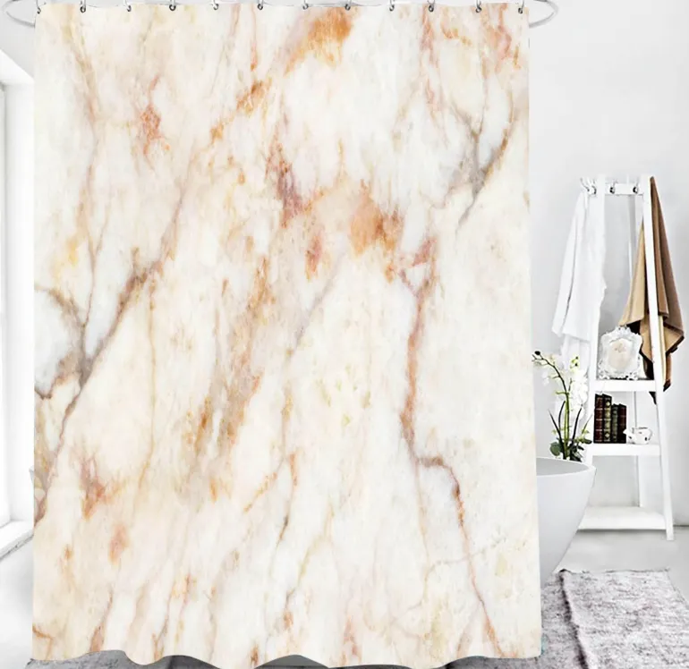 Verwandeln Sie Ihr Badezimmer mit dem Duschvorhang-Set Calcutta Oro – eine perfekte Kombination aus Stil und Funktionalität, die Ihren Raum verschönert. Dieser elegante Duschvorhang präsentiert sich mit einem raffinierten Marmormuster und verleiht Ihrem Alltag einen Hauch von Luxus. Hergestellt aus langlebigen Materialien, wertet er nicht nur Ihre Einrichtung auf, sondern bietet auch effektive Wasserbeständigkeit und sorgt so für ein frisches und sauberes Raumklima.