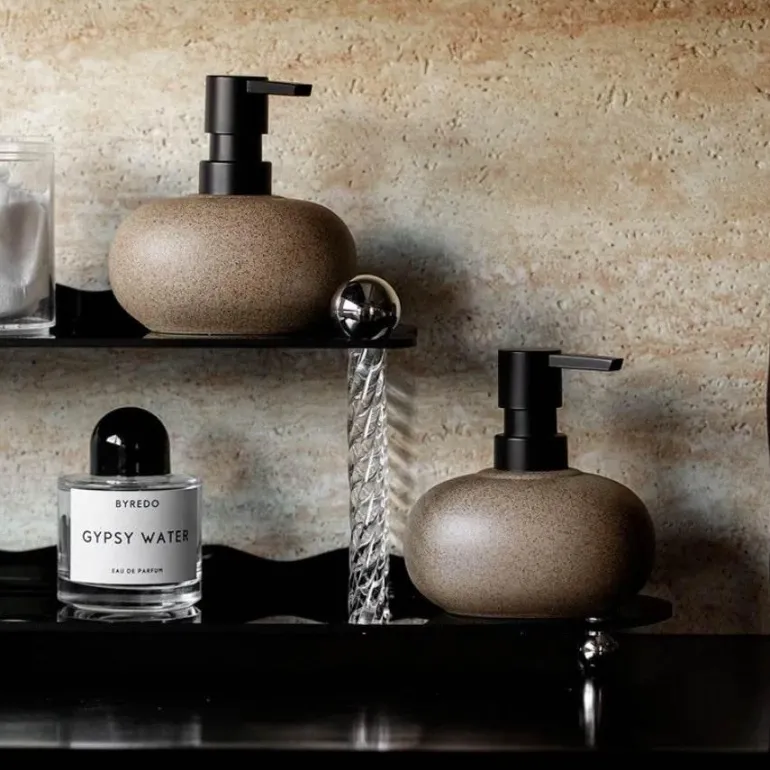Transform your kitchen or bathroom with this elegant ceramic soap dispenser, designed to bring a natural element to your decor. Its smooth ceramic surface, adorned in warm, earthy tones, mimics the organic contours of river-polished stones, creating a soothing atmosphere in any space.