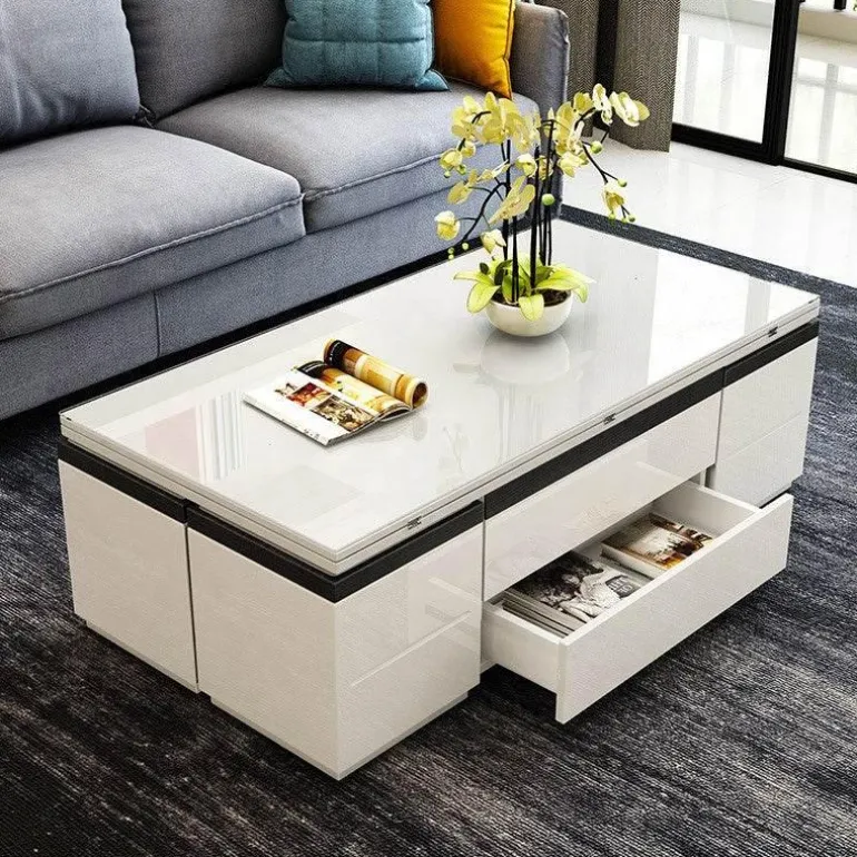 Crafted from high-quality materials with a sleek and modern aesthetic, this coffee table not only boasts durability but also enhances the visual appeal of your home. Its modular design provides the flexibility to customize the table to meet your specific requirements, whether you’re accommodating guests or creating a cozy work area.